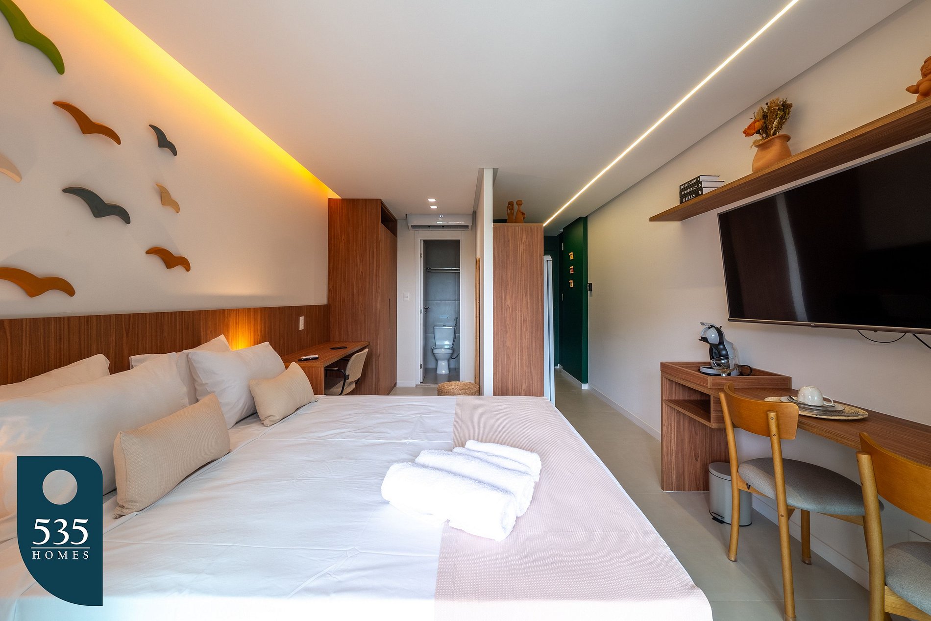 The condominium offers excellent infrastructure in its common areas, carefully designed to provide comfort and well-being to its residents. The laundry room is equipped with modern machines that make the washing and drying process easier, ensuring convenience for everyone. The fully equipped gym is available for those seeking a fitness routine, with 500m² and complete infrastructure, sports bar, gourmet workplace and barbecue place, while the rooftop, which is one of the biggest in the city provides a stunning environment where residents can relax or socialize, enjoying the tranquility and the surrounding view. For those looking for a workspace, the condominium offers a modern and functional workplace, ideal for professional activities, with workstations and high-speed internet.