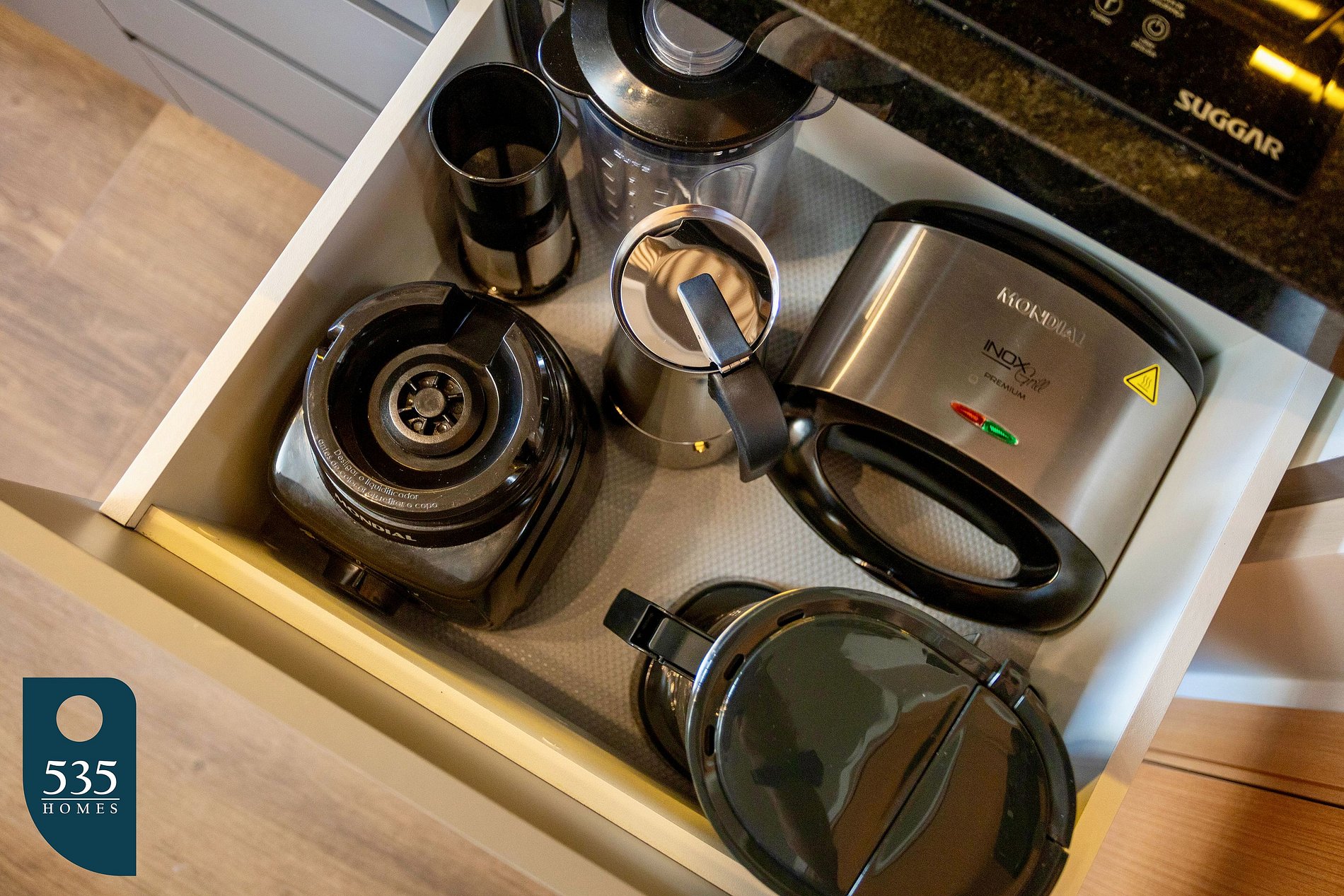 On the rooftop, guests can enjoy a cozy lounge and a well-equipped gourmet area, both with facial recognition access, as well as an accessible restroom for greater convenience.