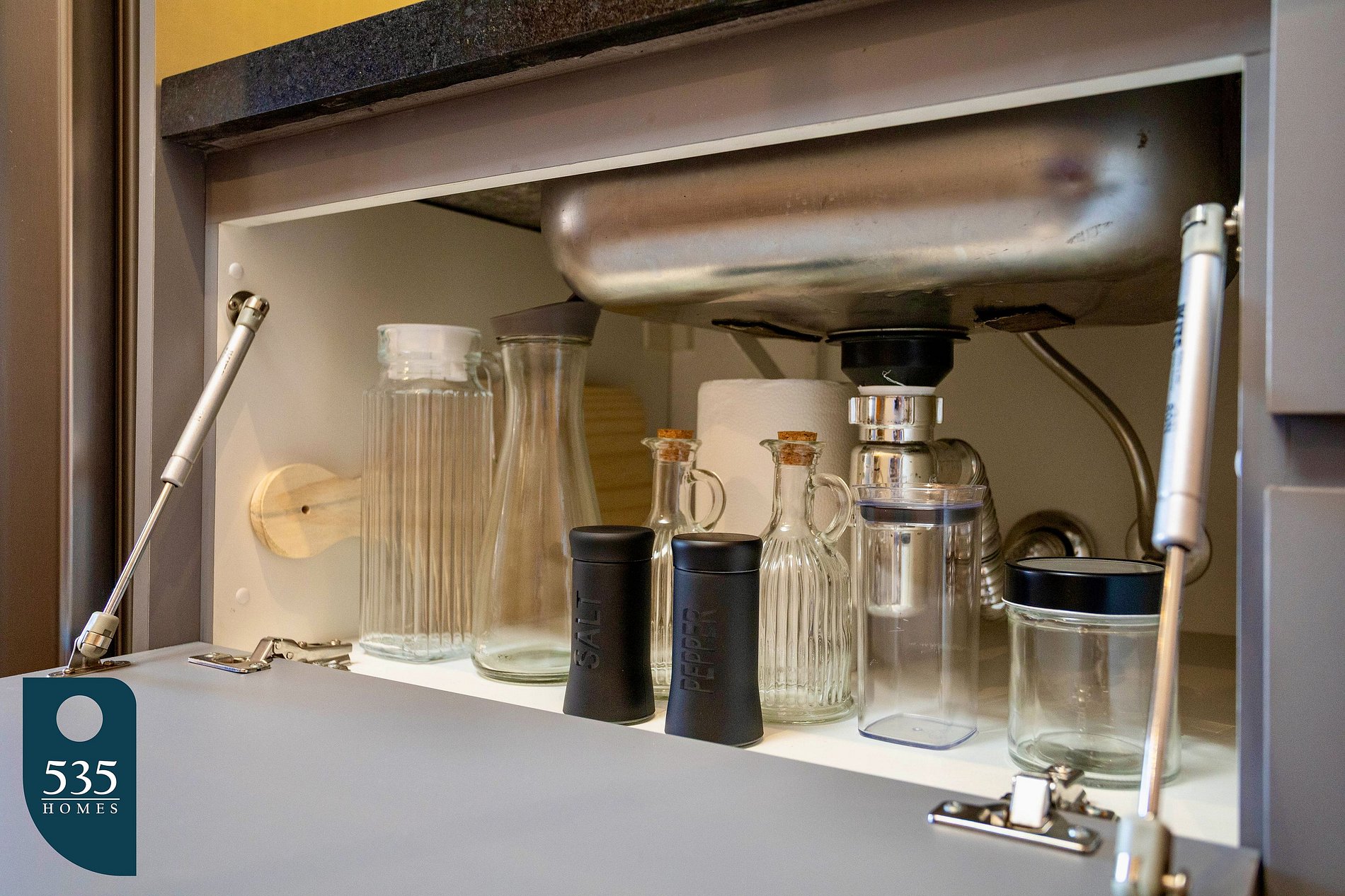 This short-term rental apartment offers comfort and practicality in a functional space. The kitchen is equipped with a refrigerator, microwave, two-burner induction cooktop, range hood, blender, sandwich maker, electric coffee maker, Italian coffee maker, water purifier, kitchen utensils, and a set of pots with lids. The apartment also includes a portable clothes rack and clothespins for added convenience.