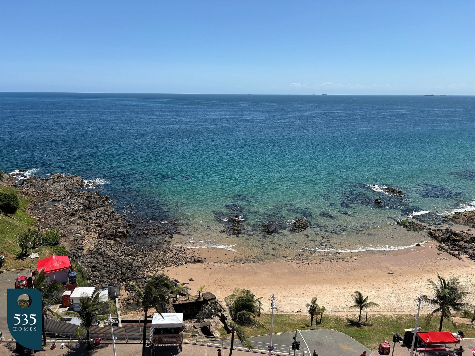 This vacation apartment is located on the main seafront promenade of Barra, in Salvador, on the 8th floor, offering a wide view of the ocean as well as the Carnival circuit. The elevated position allows you to enjoy the excitement of the festivities and take in the scenic coastline, just steps away from the beach.
