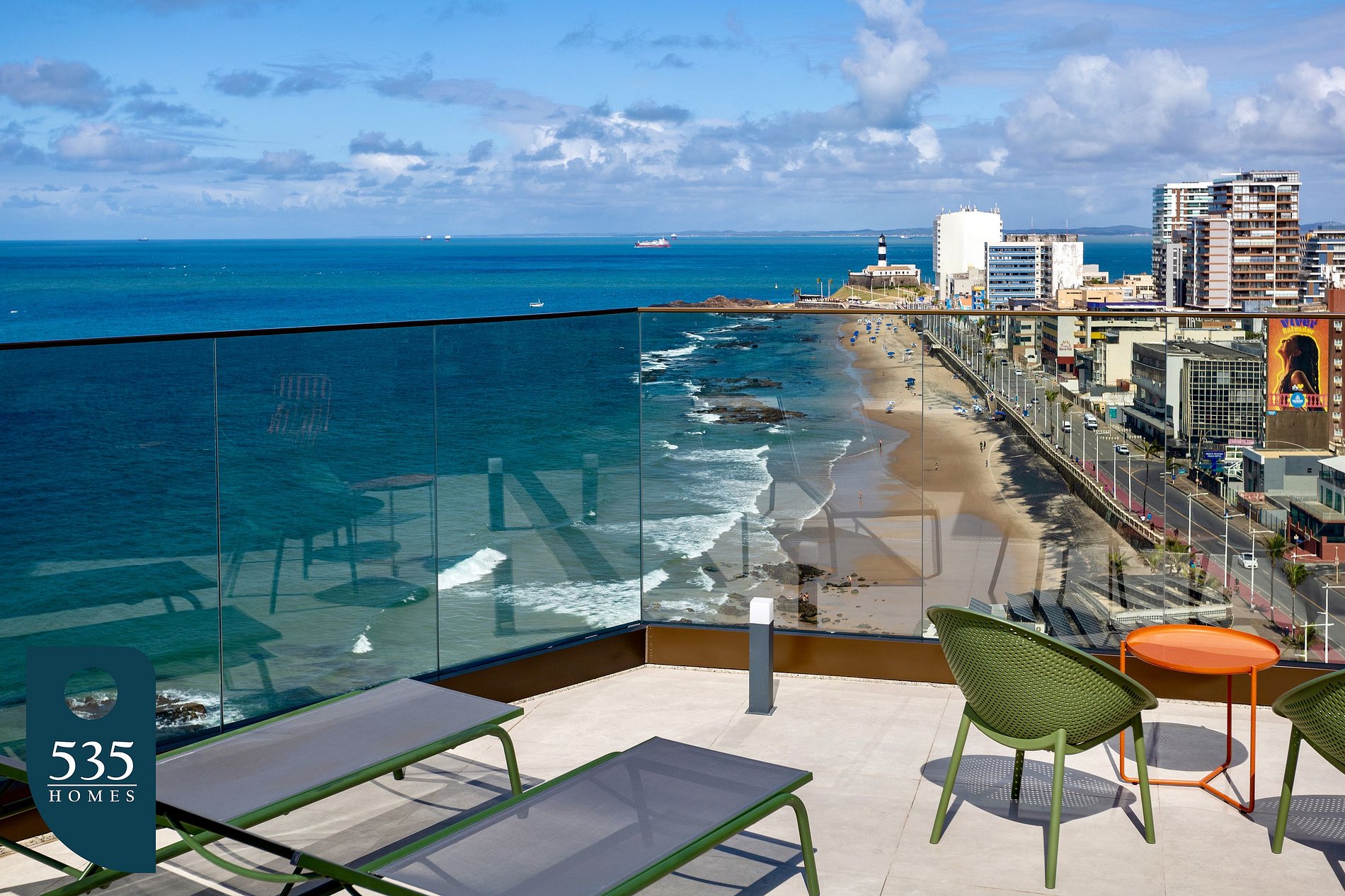This vacation apartment is located on Barra’s main waterfront in Salvador, on the 8th floor, offering a wide view of the ocean and the Carnival circuit. Its elevated position allows guests to follow the energy of the festivities and enjoy the standout coastal scenery, just a few steps from the beach.