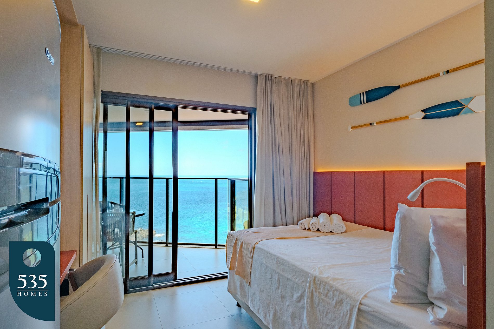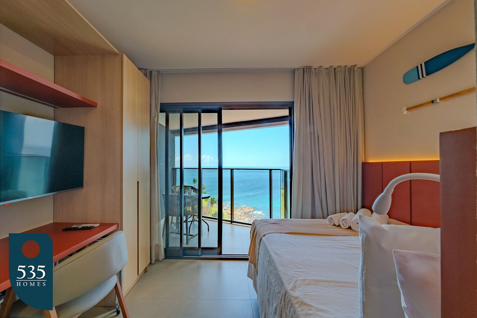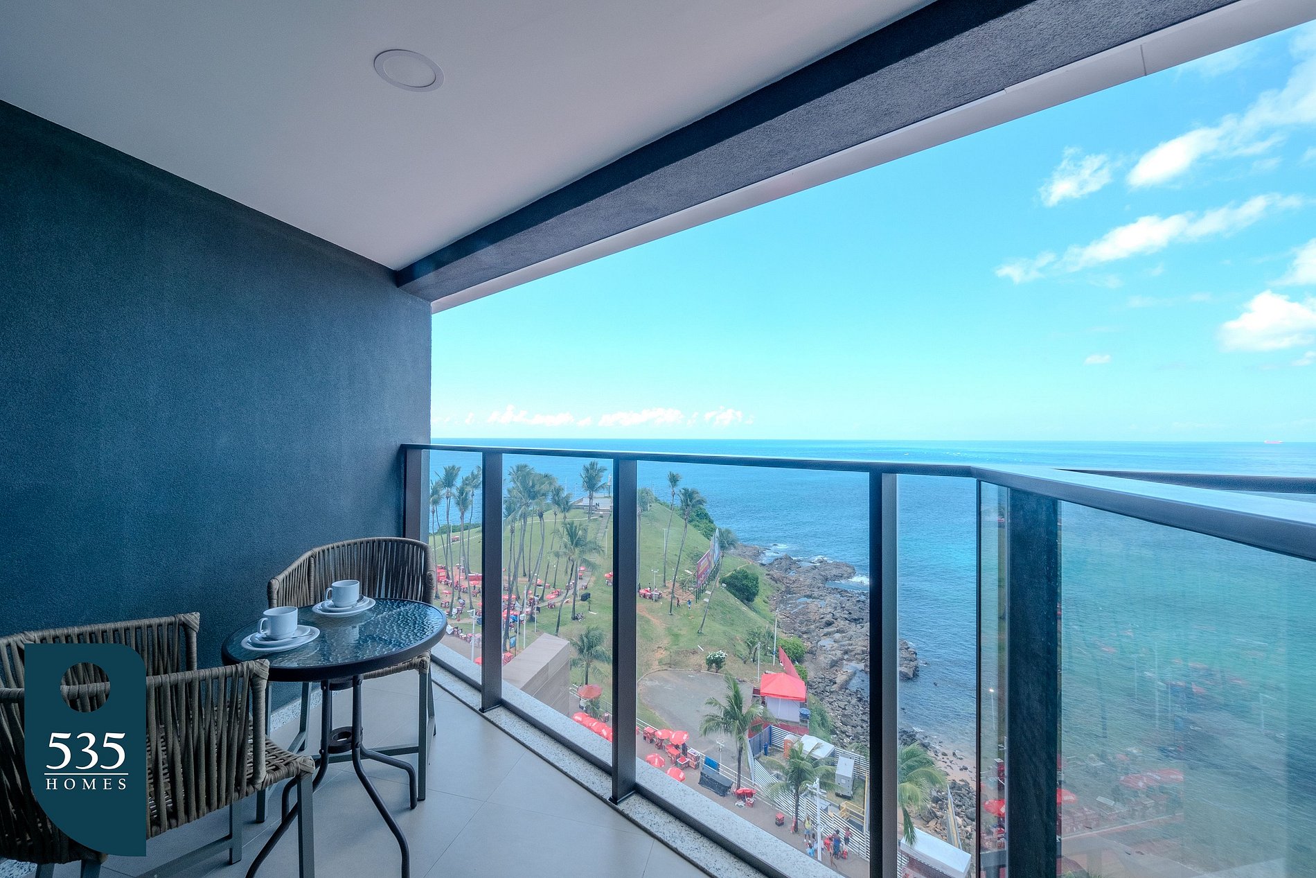 This vacation apartment is located on Barra’s main waterfront in Salvador, offering a wide view of the ocean and the Carnival circuit. Its elevated position allows guests to follow the energy of the festivities and enjoy the standout coastal scenery, just a few steps from the beach.