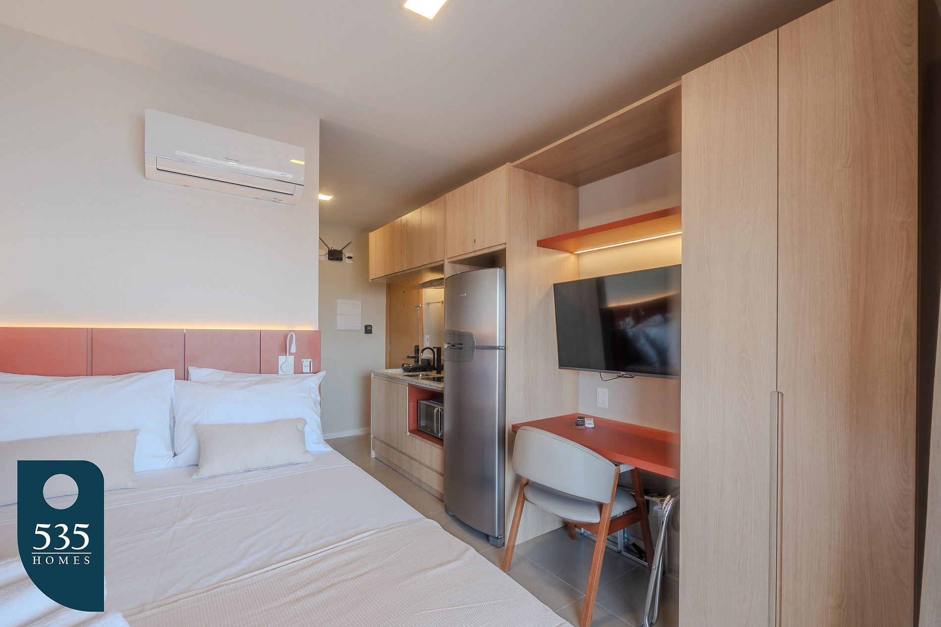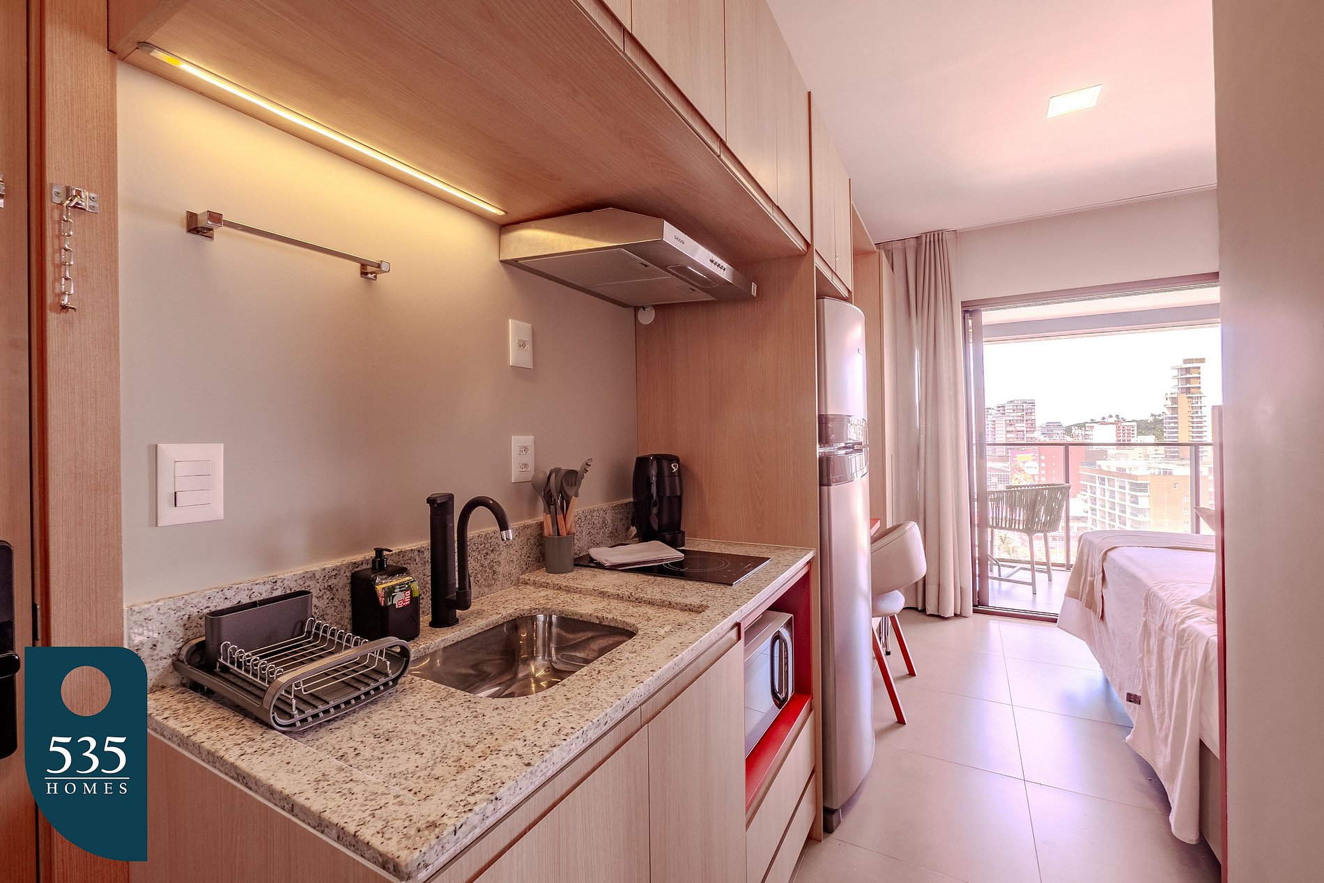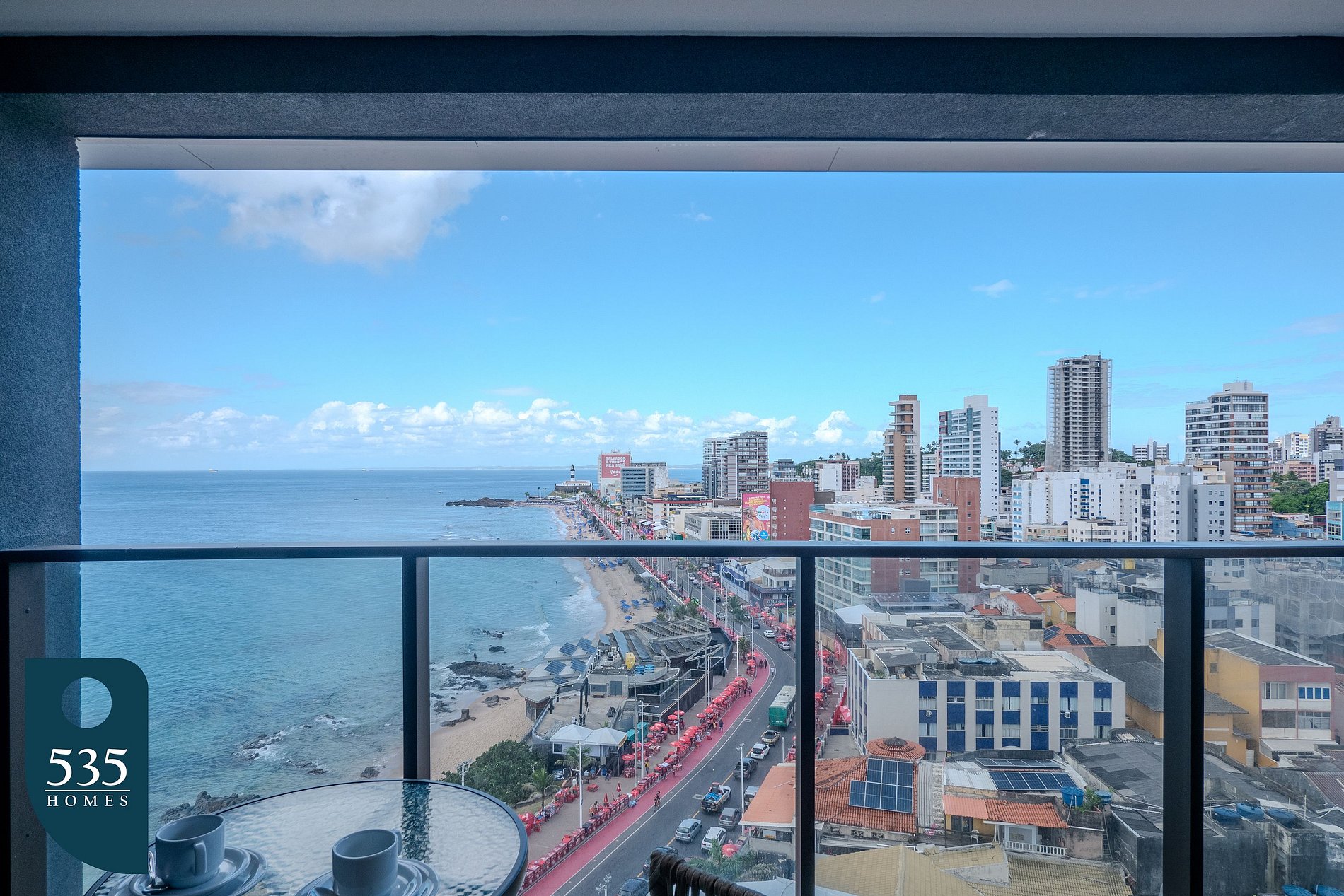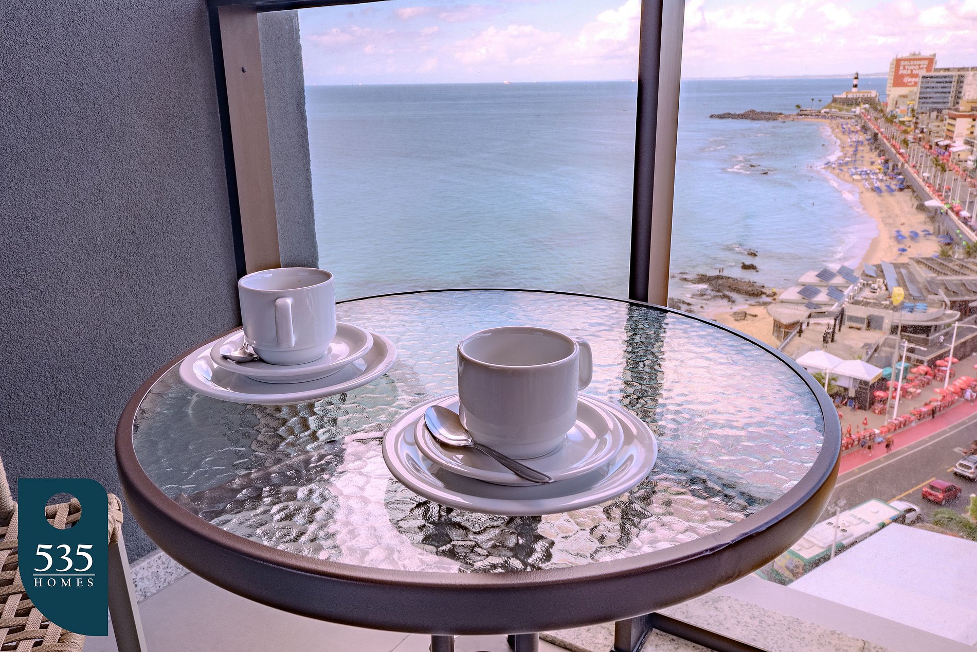 This vacation apartment is located on a high floor along Barra’s main waterfront in Salvador, offering a wide view of the ocean and the Carnival circuit. Its elevated position provides a privileged vantage point to follow the energy of the festivities and enjoy the coastal scenery, just a few steps from the beach.