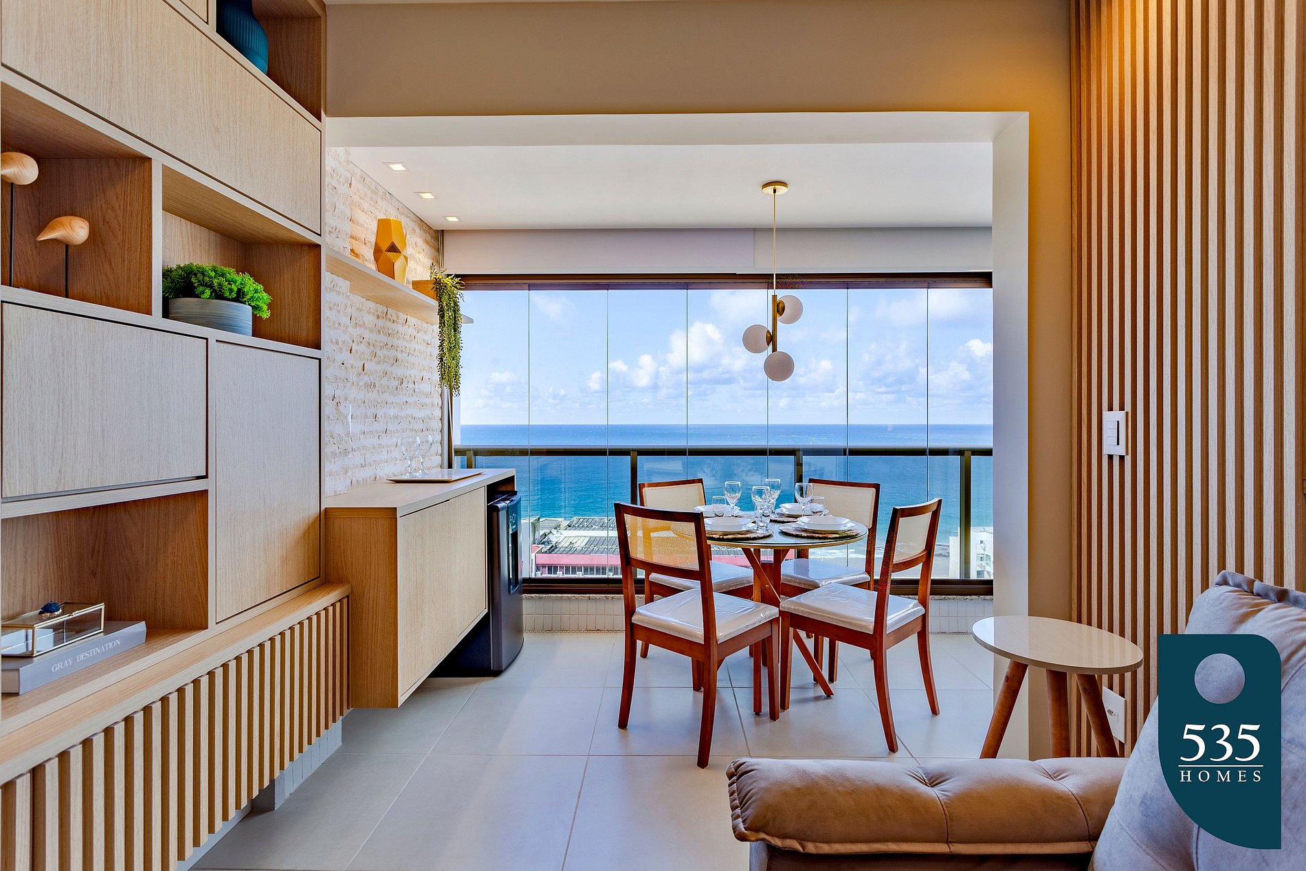 Todos o móveis novos e uma vista linda para a praia da Barra.