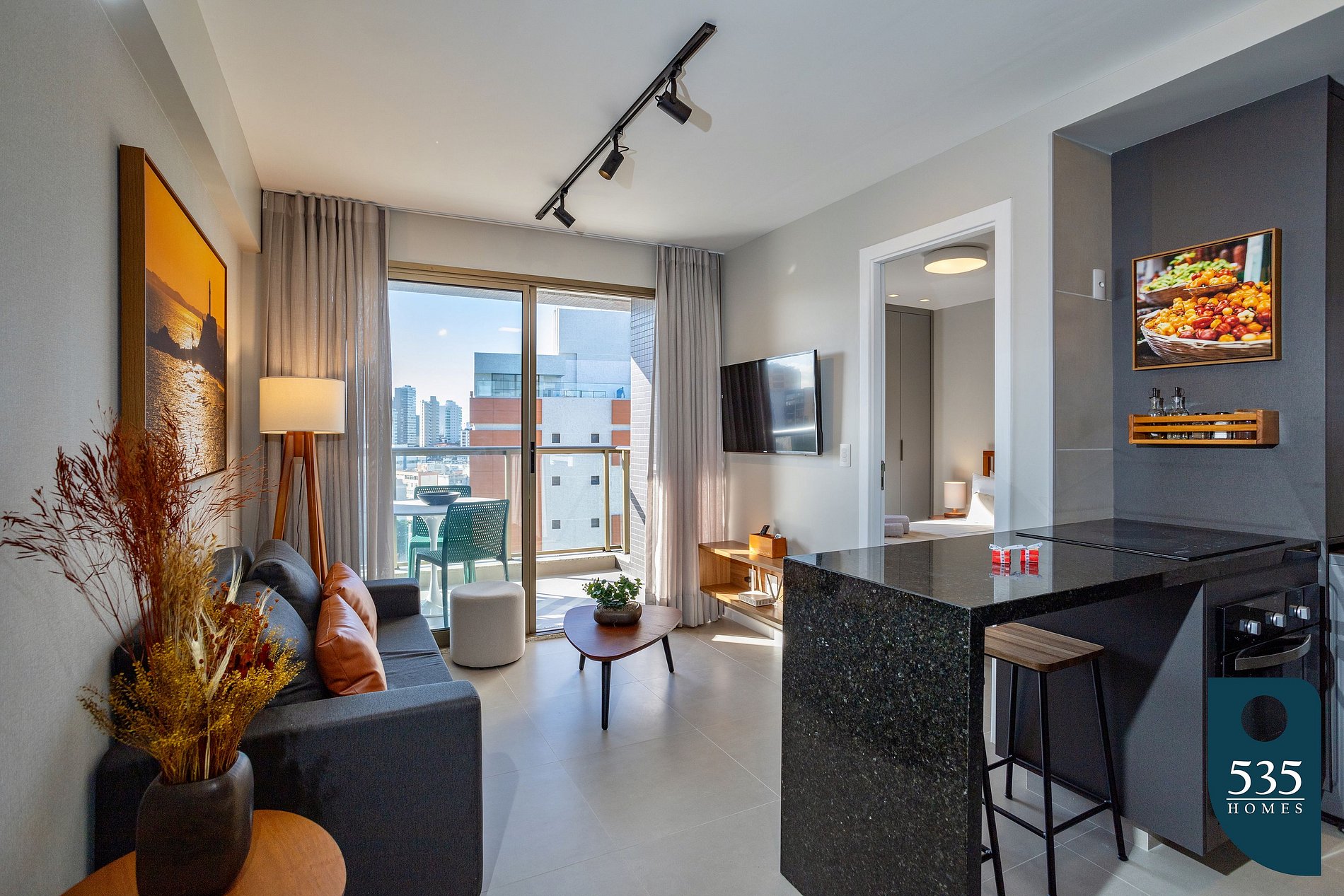 Discover the comfort of our 1-bedroom apartment in Barra, Salvador da Bahia. With modern decor and fully equipped, it offers everything to make you feel at home. Located on a high floor, it ensures a peaceful stay. The condominium features a lap pool, sauna, coworking space and fitness center. Close to shopping malls, restaurants, and markets, it's the perfect place for your stay.