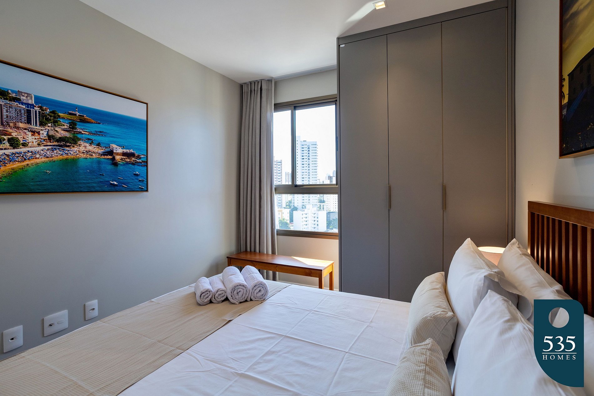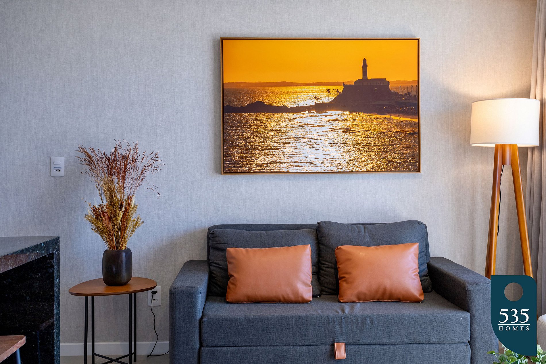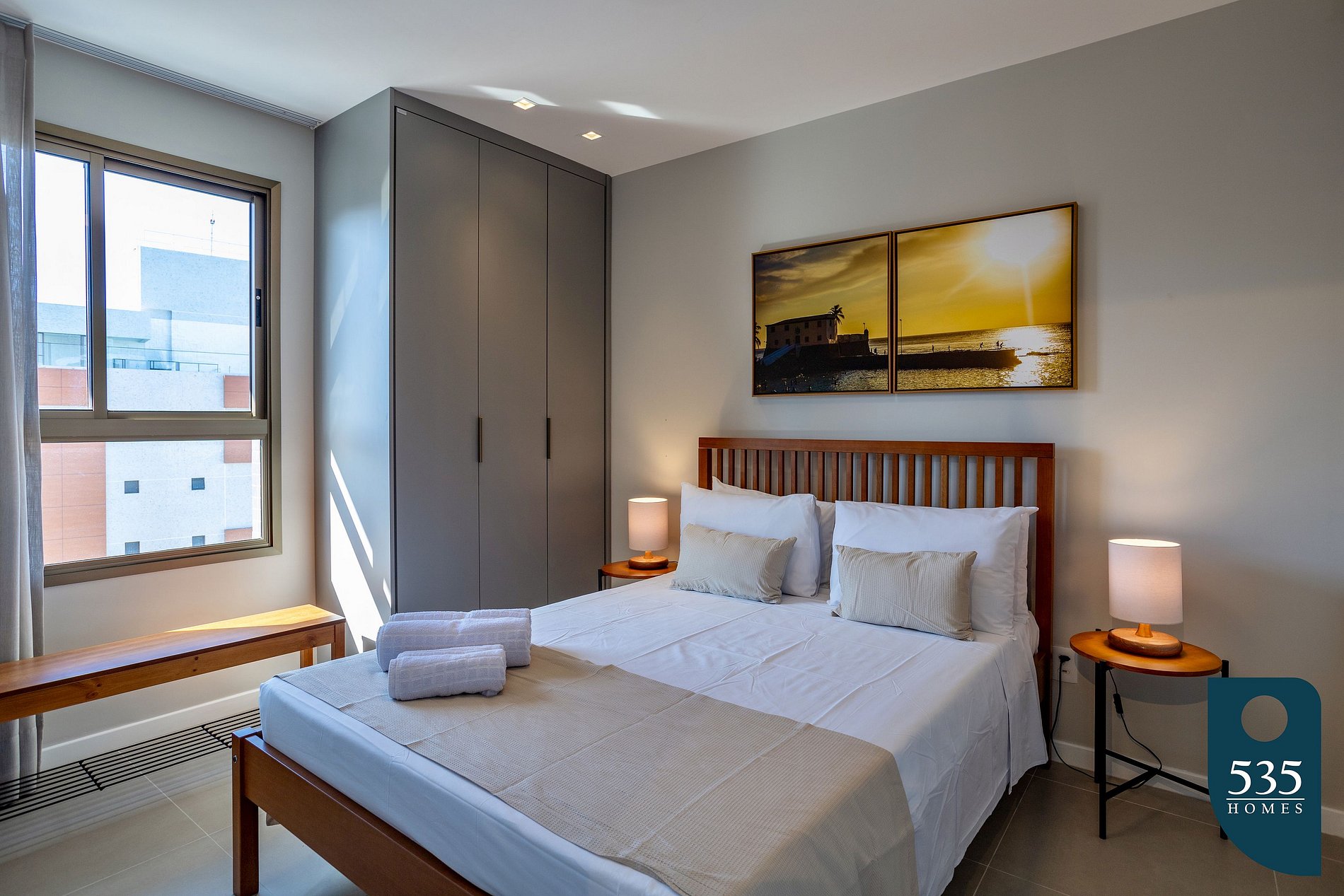 Discover the comfort of our 1-bedroom apartment in Barra, Salvador da Bahia. With modern decor and fully equipped, it offers everything to make you feel at home. Located on a high floor, it ensures a peaceful stay. The condominium features a lap pool, sauna, coworking space and fitness center. Close to shopping malls, restaurants, and markets, it's the perfect place for your stay.