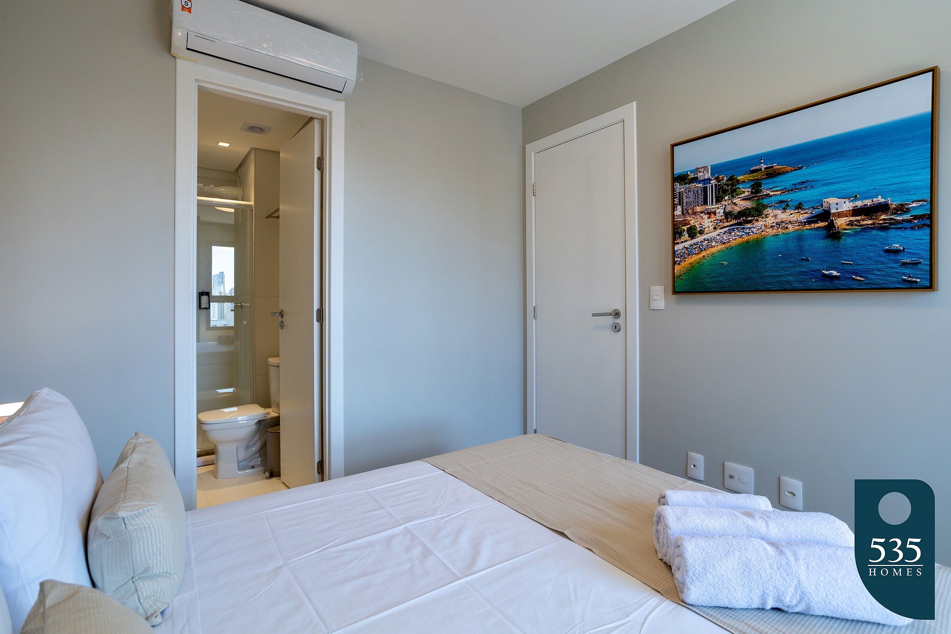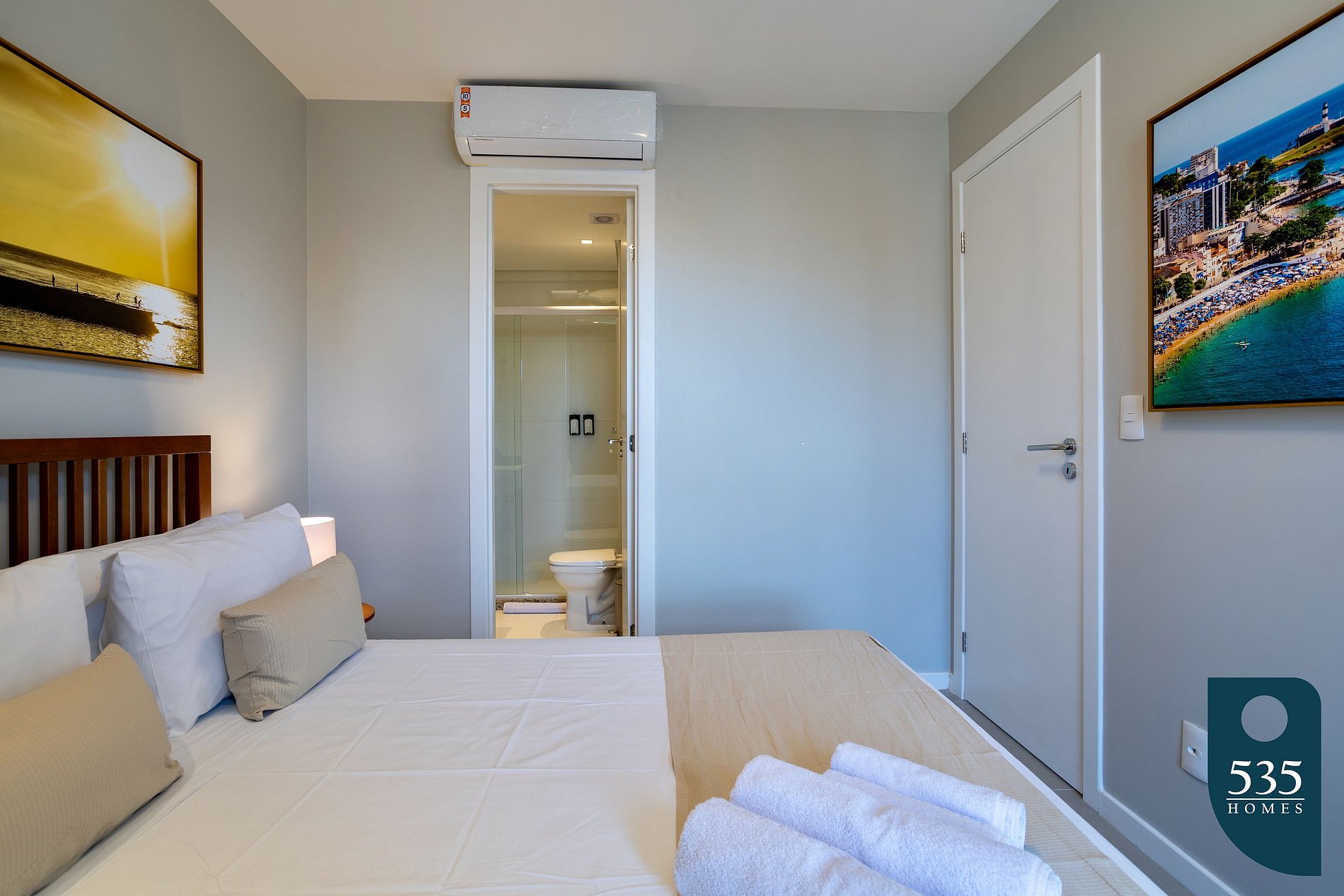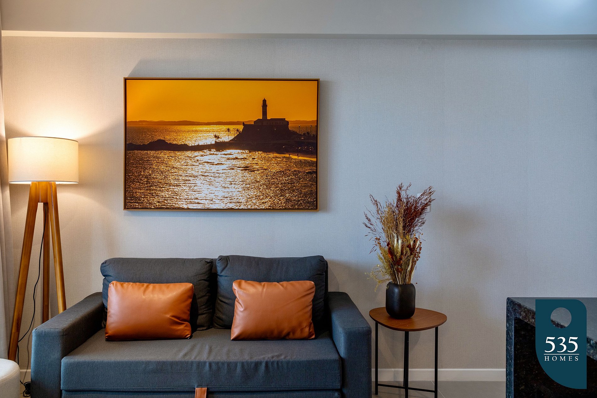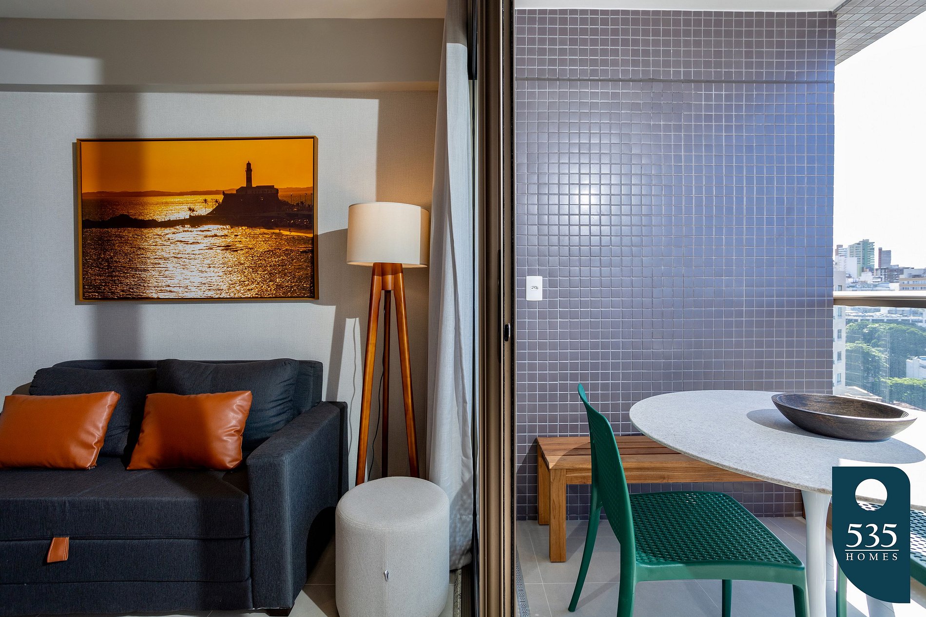 Discover the comfort of our 1-bedroom apartment in Barra, Salvador da Bahia. With modern decor and fully equipped, it offers everything to make you feel at home. Located on a high floor, it ensures a peaceful stay. The condominium features a lap pool, sauna, coworking space and fitness center. Close to shopping malls, restaurants, and markets, it's the perfect place for your stay.