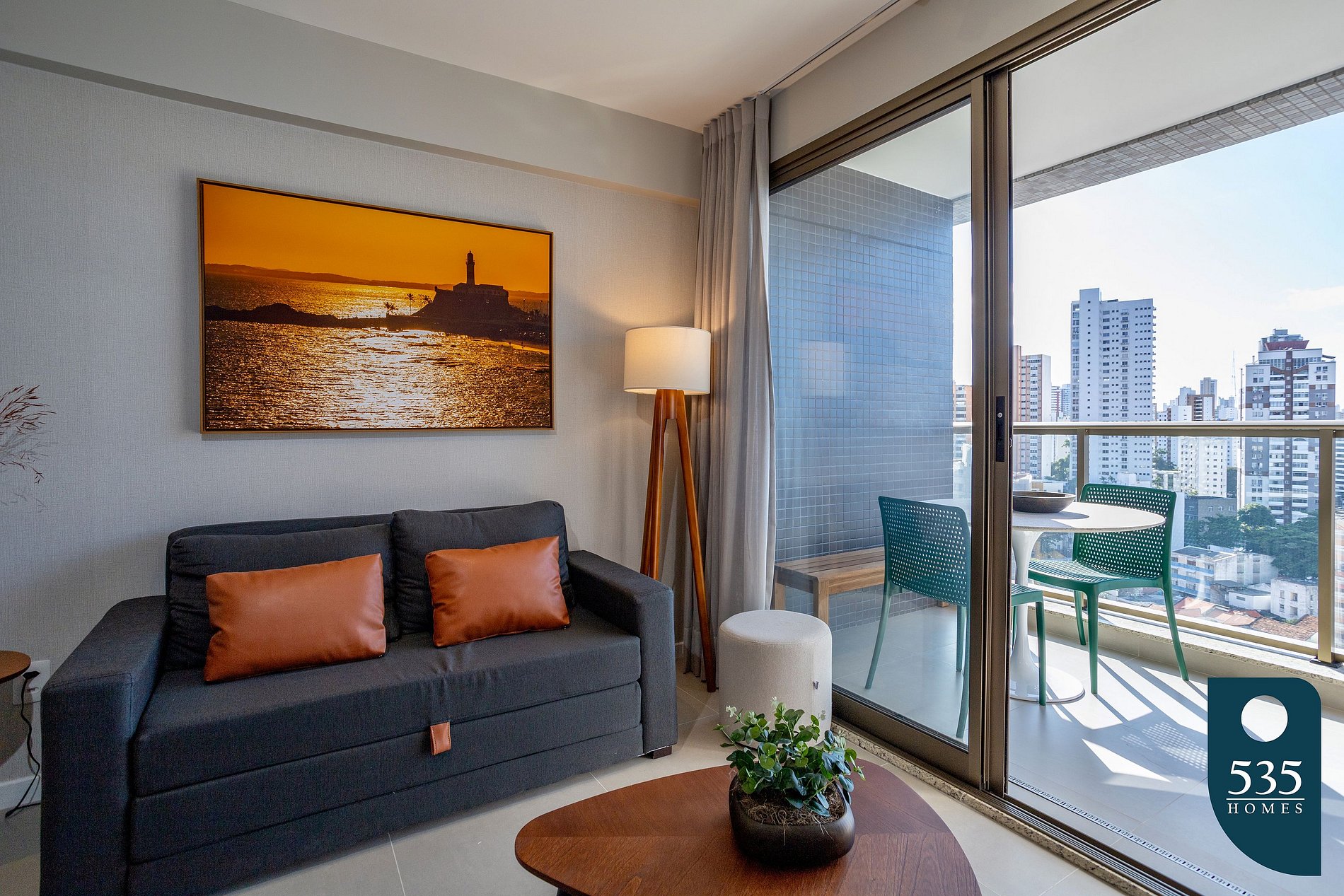 Discover the comfort of our 1-bedroom apartment in Barra, Salvador da Bahia. With modern decor and fully equipped, it offers everything to make you feel at home. Located on a high floor, it ensures a peaceful stay. The condominium features a lap pool, sauna, coworking space and fitness center. Close to shopping malls, restaurants, and markets, it's the perfect place for your stay.