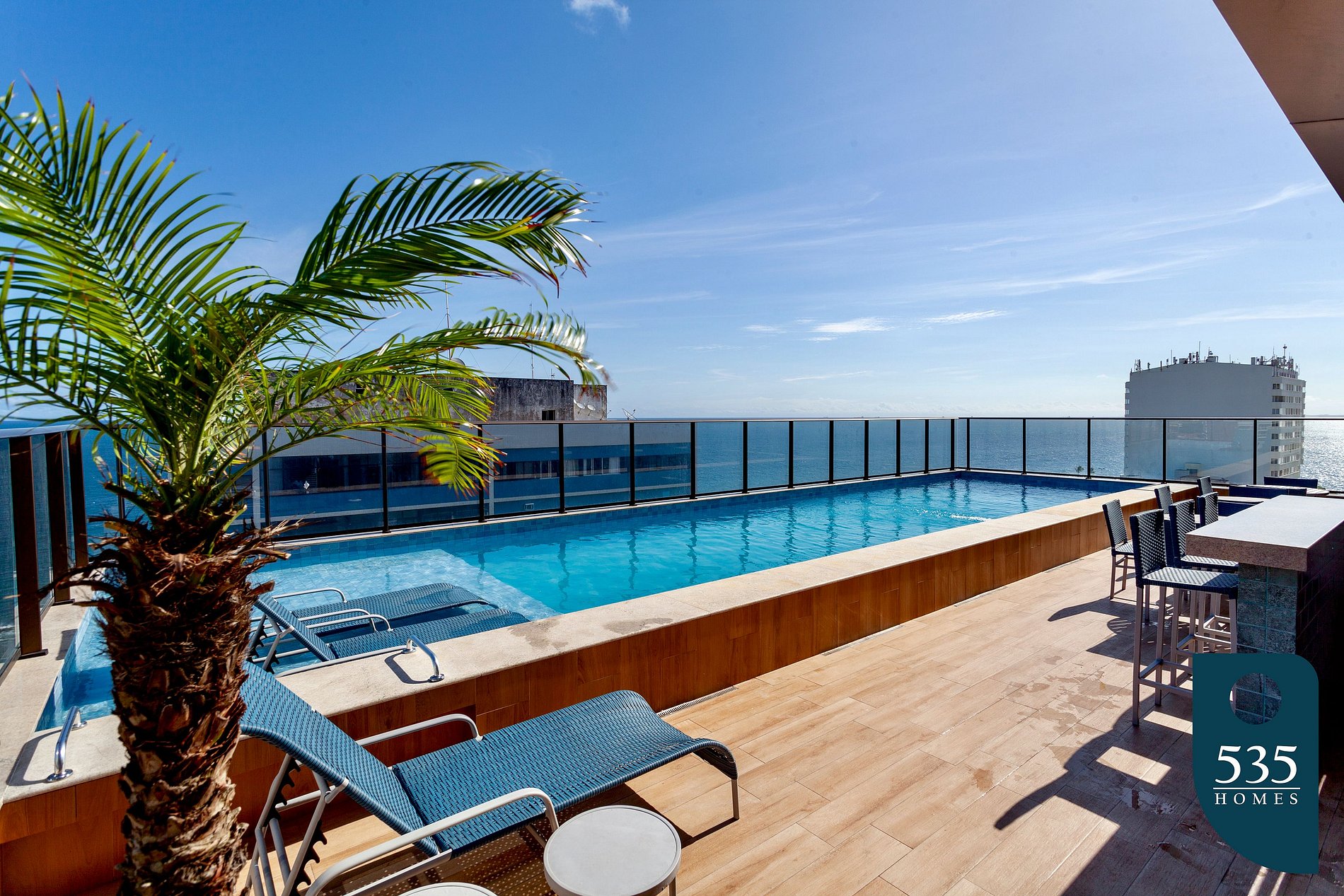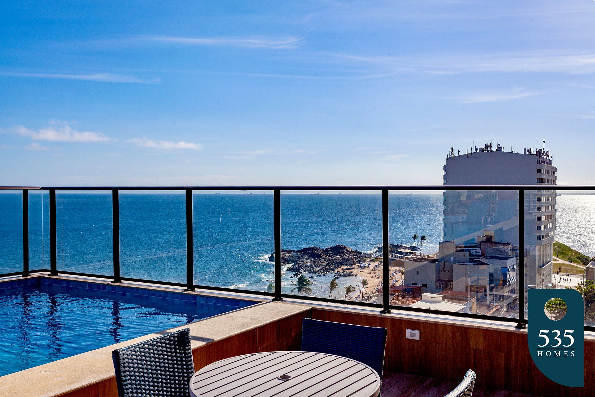 Enjoy the side view of the sea from our balcony and be just a few steps away from Farol da Barra beach.