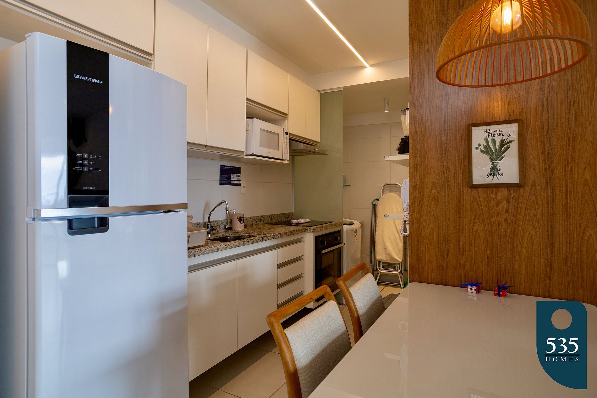 The glass-enclosed balcony is an additional living space that can be fully opened or closed, offering a breathtaking view of the sea. Enjoy the gourmet area, which includes a Três Corações capsule coffee maker and a beer fridge, perfect for keeping your drinks at the ideal temperature while you take in the view or unwind with a drink.