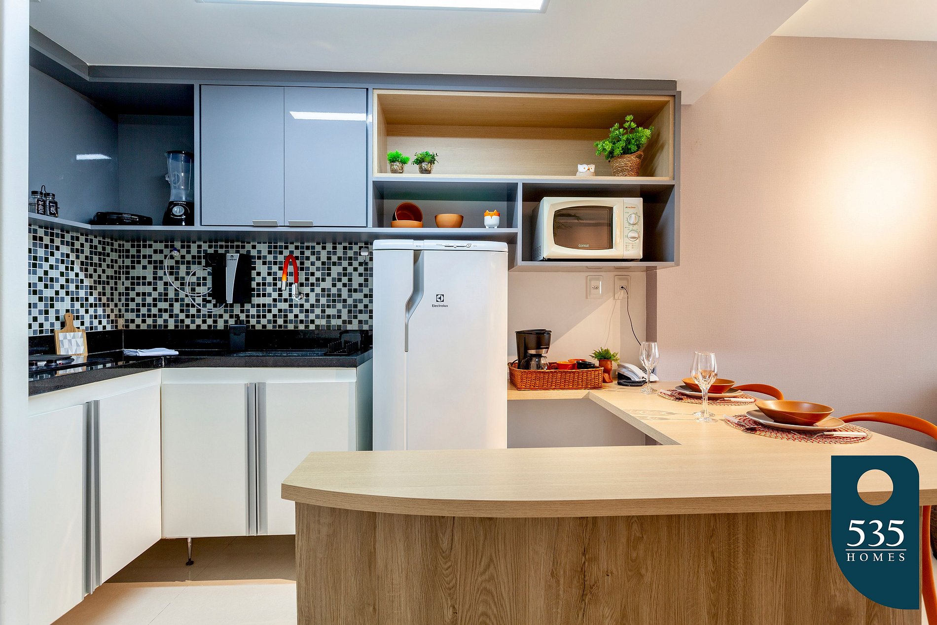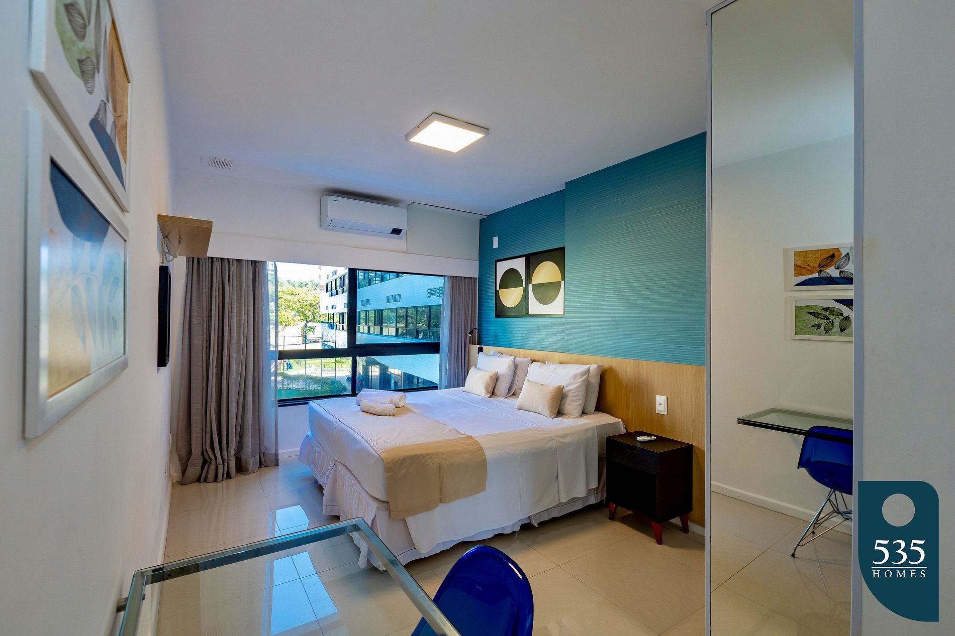 The space is well-equipped with a TV, air conditioning in the bedroom and living room, 150Mbps Wi-Fi internet, refrigerator, blender, microwave, Dulce Gusto coffee maker, sandwich grill, water filter, and hairdryer.
