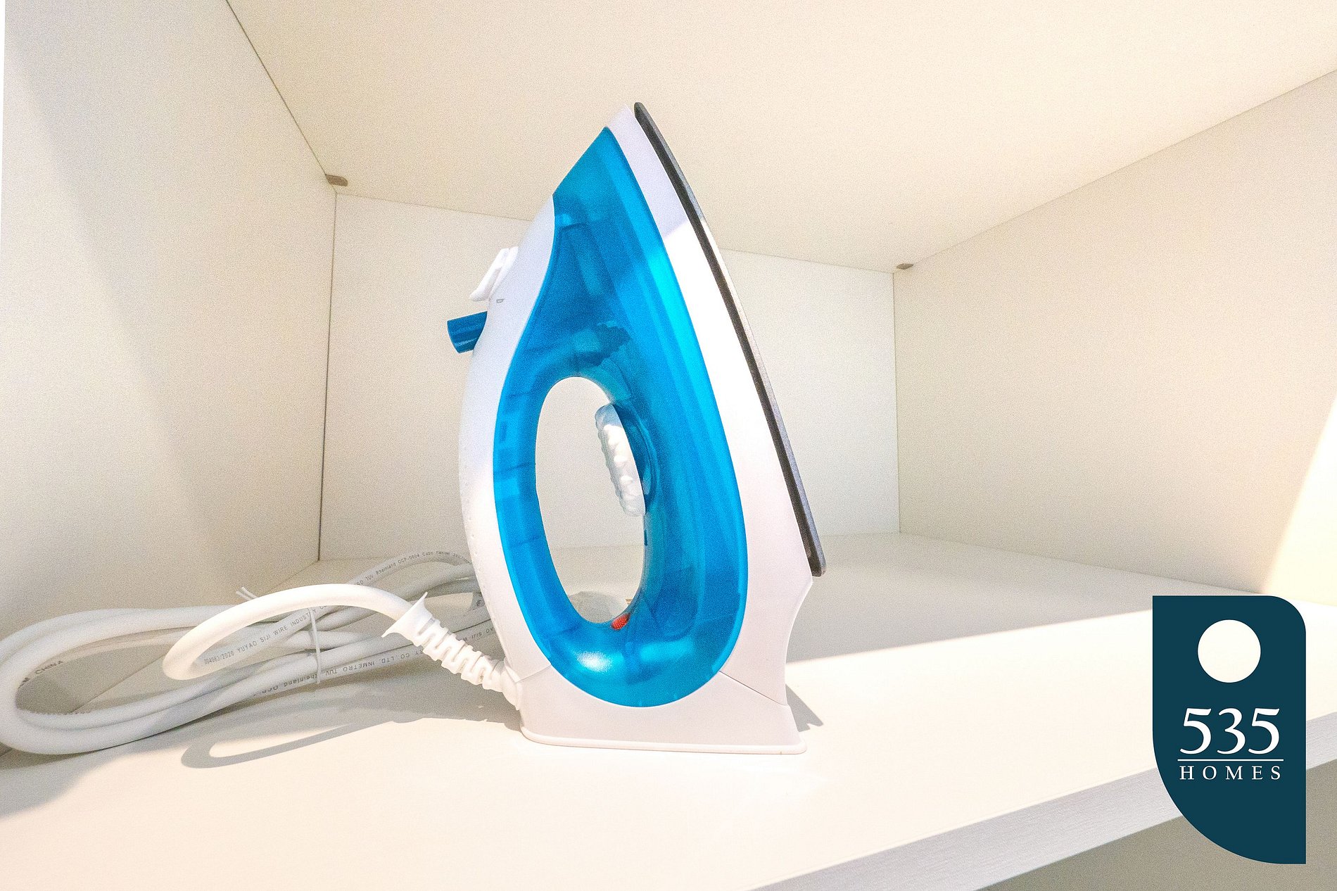 Additionally, it includes an iron and ironing board, hair dryer, and emergency light for added convenience and safety.