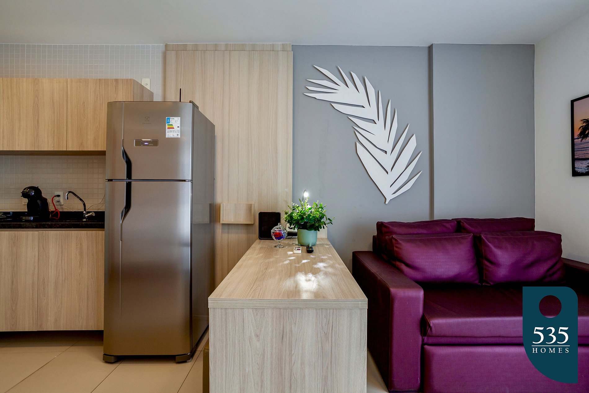 The space is very well-equipped with a TV, air conditioning, 100Mbps Wi-Fi Internet, refrigerator, blender, microwave, Dolce Gusto coffee maker, sandwich grill, water filter, and hairdryer. There is a laundry area with a washing machine and a utility sink.