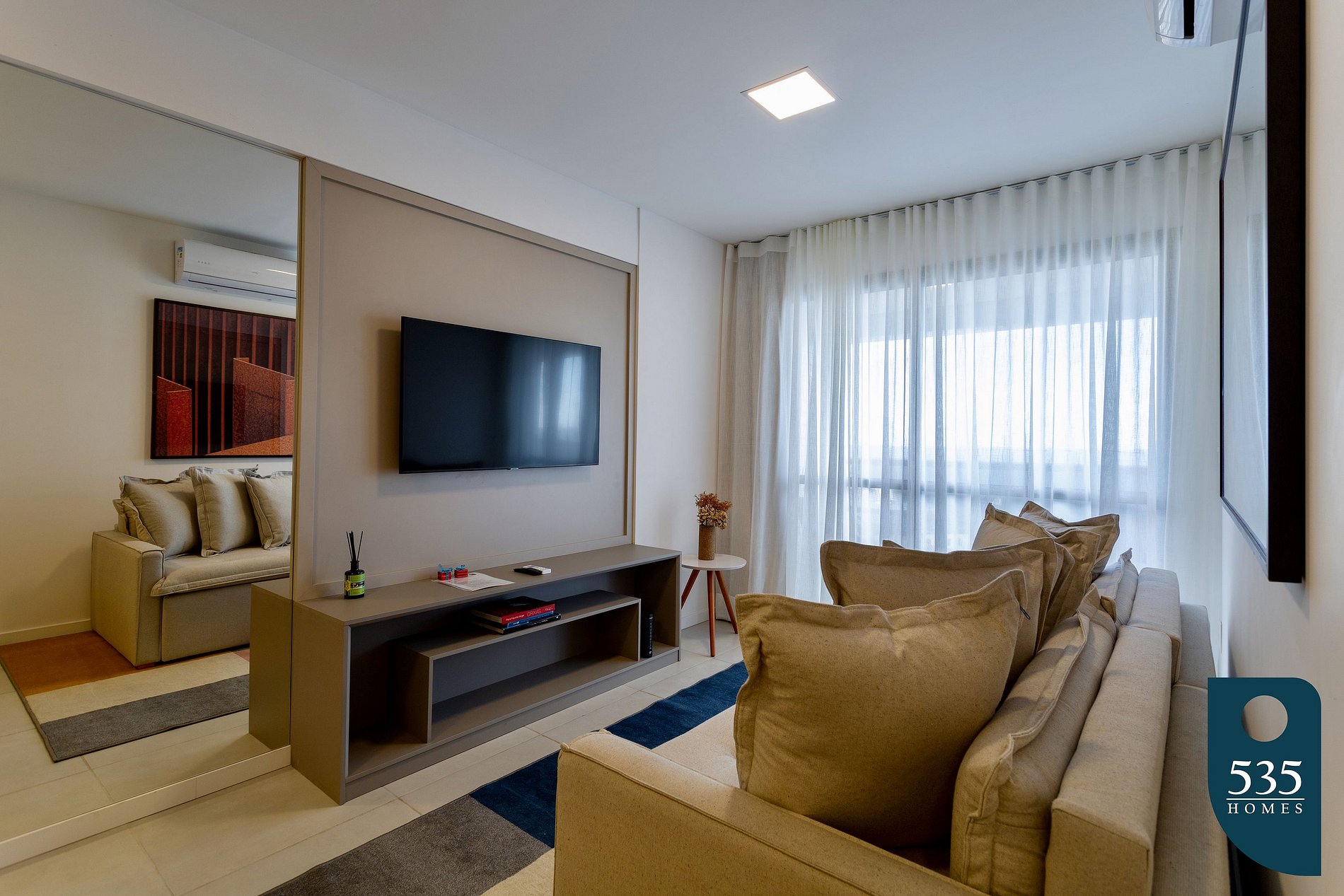 In the apartment, you'll find a 55" Smart LED TV in the living room and another 50" Smart LED TV in the bedroom, for moments of entertainment. The washer and dryer combo is available for guests' use, making your stay even more convenient.