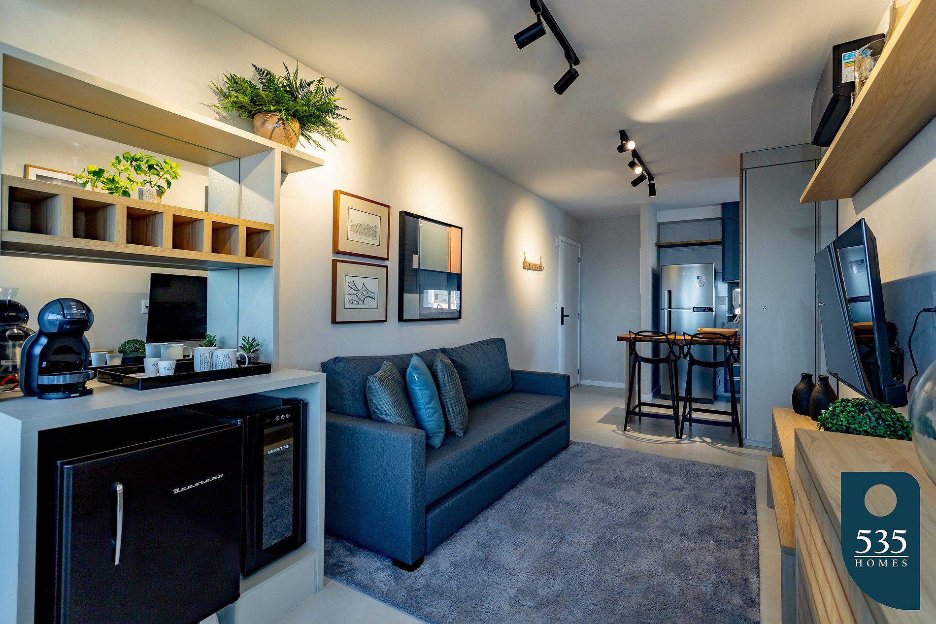 On our balcony, we also have a gourmet module with a wine cellar, beer cooler, and Dolce Gusto espresso machine.