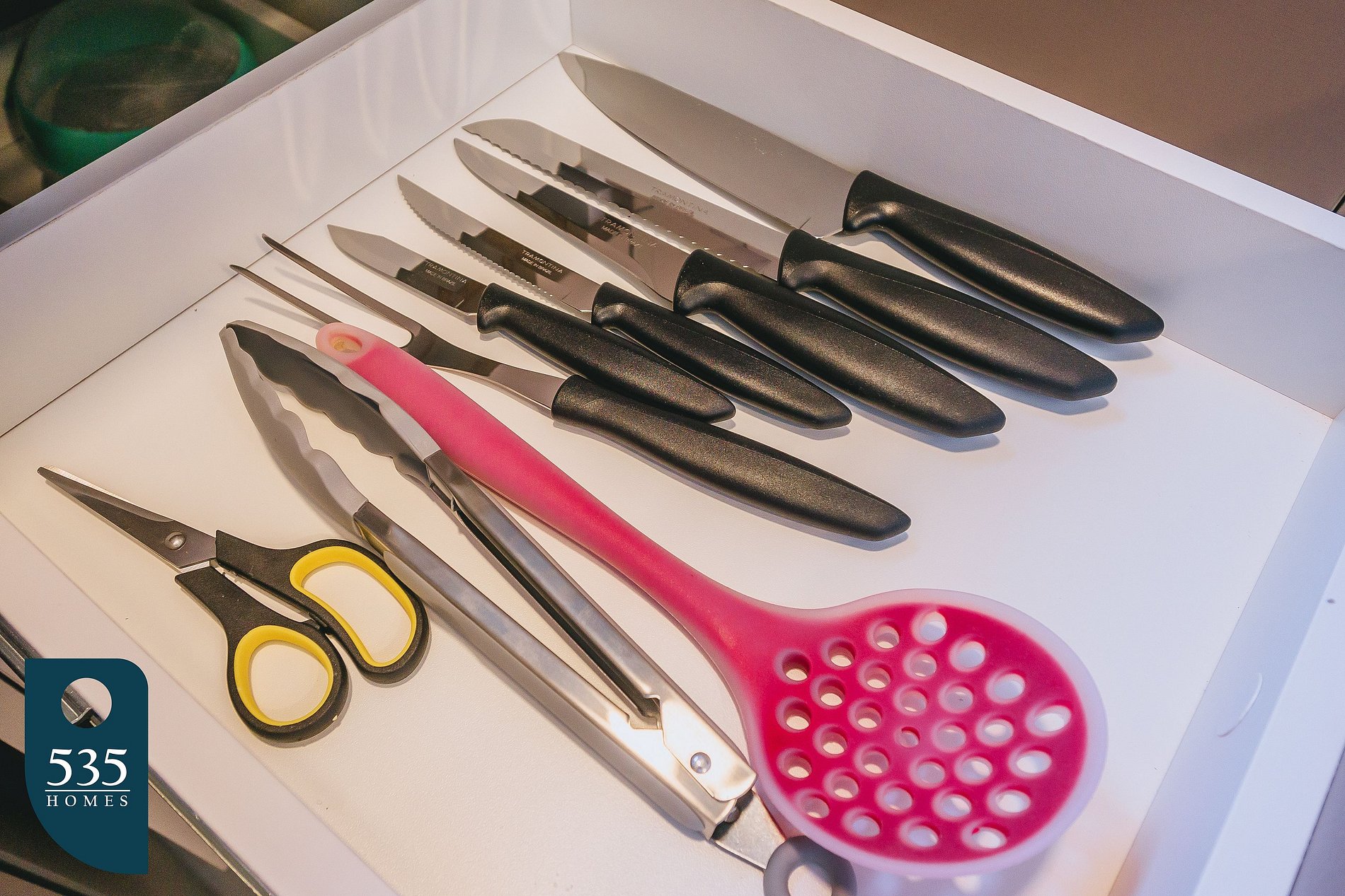 This space has been thoughtfully designed to provide everything you need. Equipped with a 40” Smart TV for your leisure moments, the kitchen includes a refrigerator, single-burner cooktop, microwave, blender, sandwich maker, and water filter, ensuring convenience for your meals.