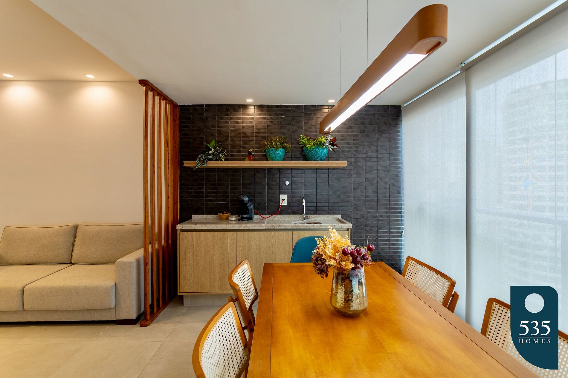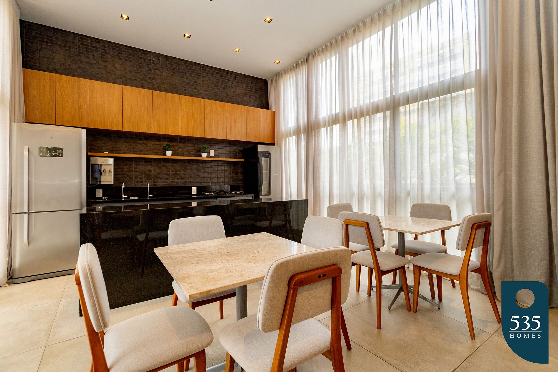 Furthermore, our fully equipped kitchen allows you to easily prepare your own meals. The spacious living room and integrated gourmet balcony are perfect for relaxing and enjoying the impressive view. To top it off, the condominium features a pool, a gym, and a party room, providing even more leisure options for our guests.