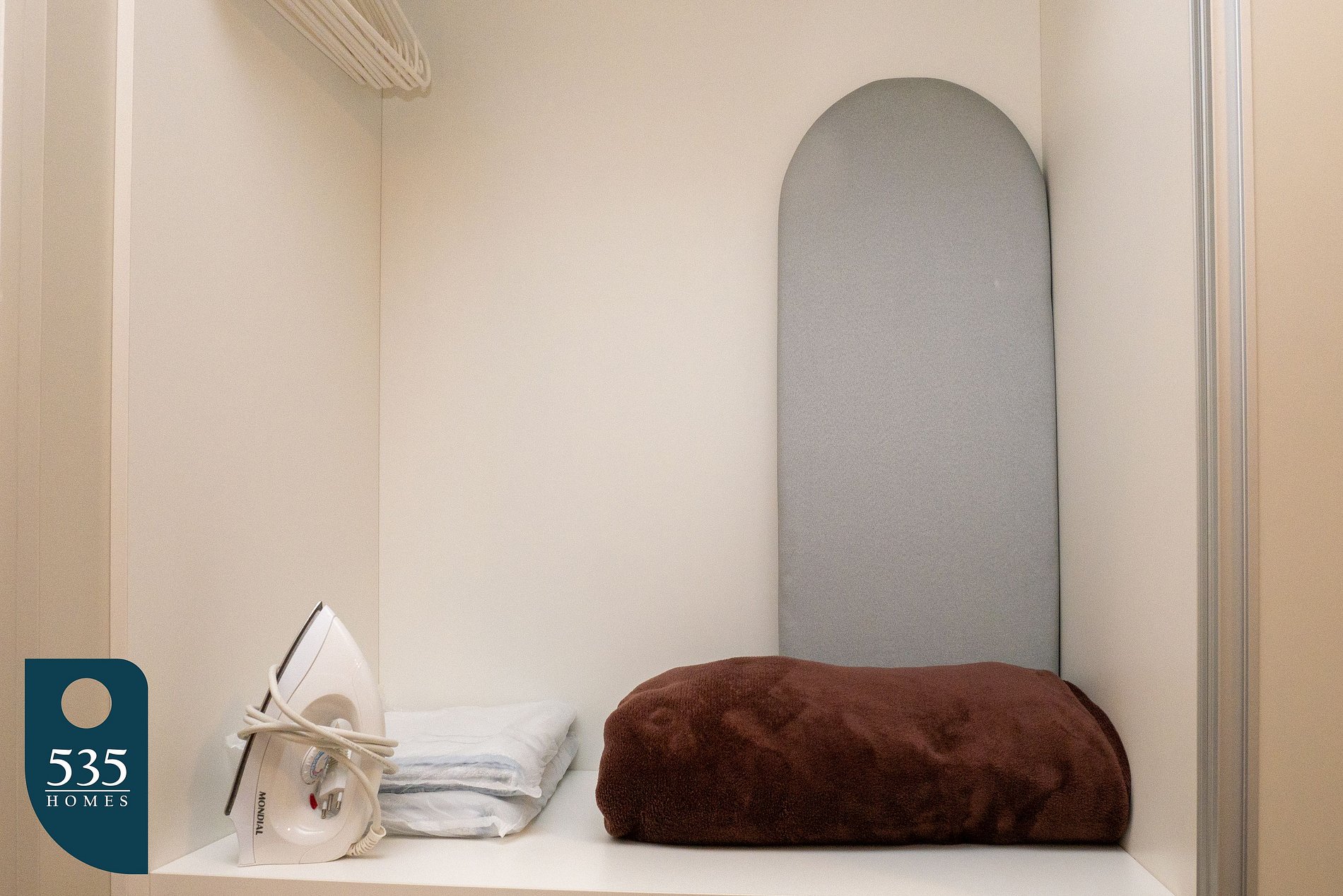 Additionally, it features air conditioning for your comfort, a refrigerator, water purifier, and a two-burner portable electric cooktop, perfect for your meals. To make life even easier, you'll find a blender, sandwich maker, microwave, and an iron for your convenience.