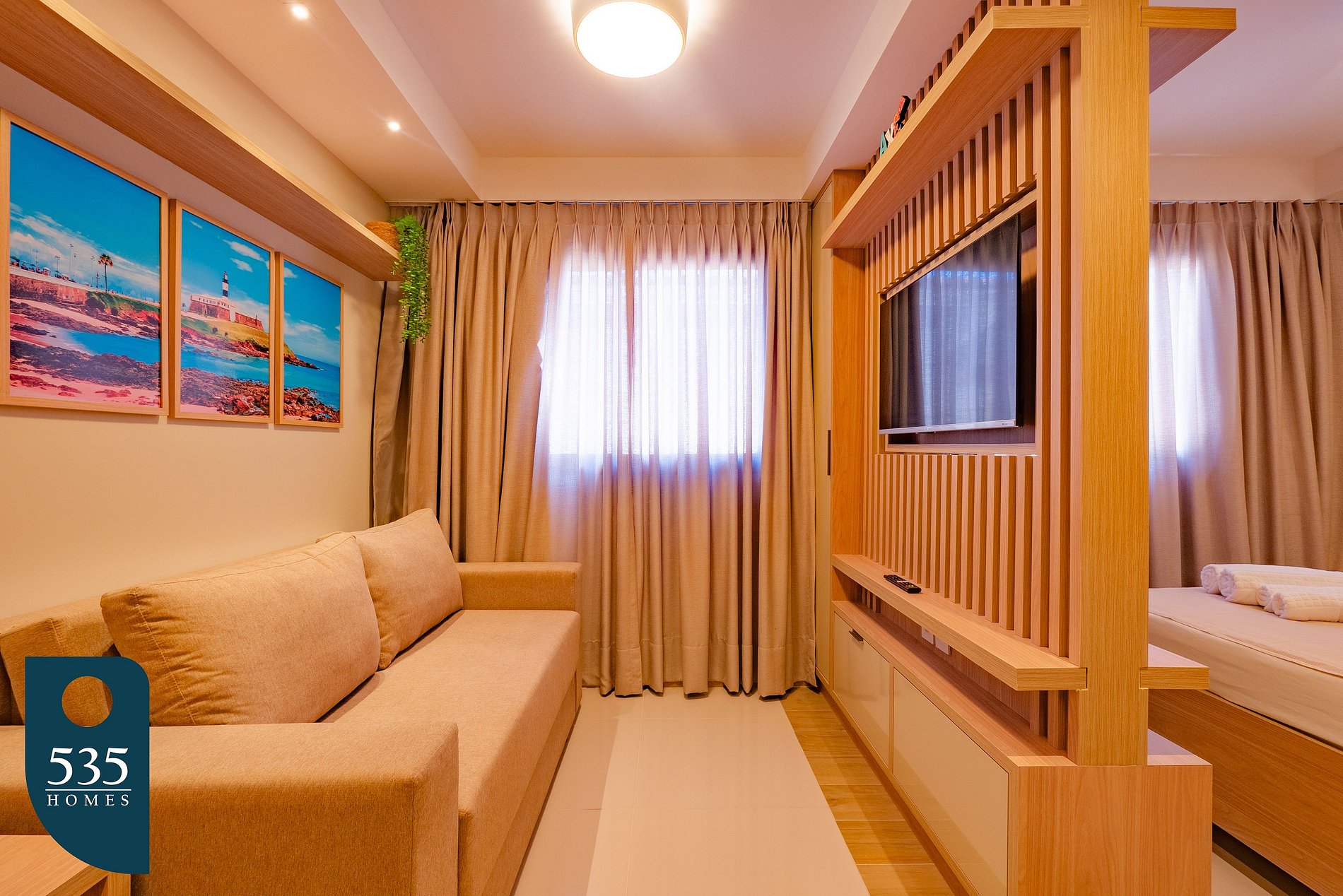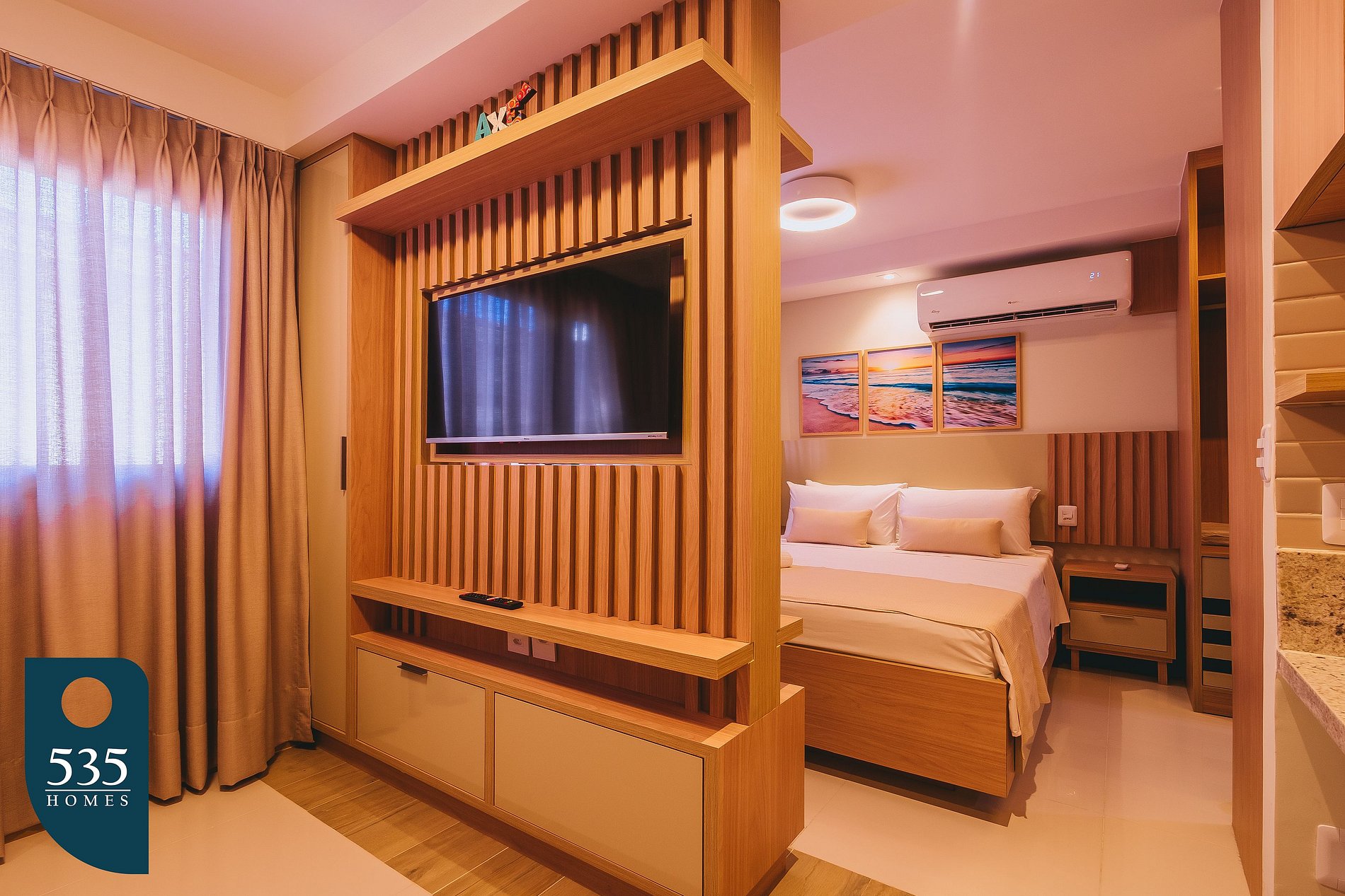 This apartment is designed to provide maximum comfort and convenience during your stay. With a 40” Smart TV, you can enjoy your favorite shows and movies with excellent image quality. The sofa bed offers an extra accommodation option, ensuring flexibility for your guests. The 350 Mbps internet ensures a fast and stable connection, ideal for both work and leisure. The air conditioning keeps the room comfortable, while the blackout curtains guarantee peaceful nights of rest by blocking out external light.
