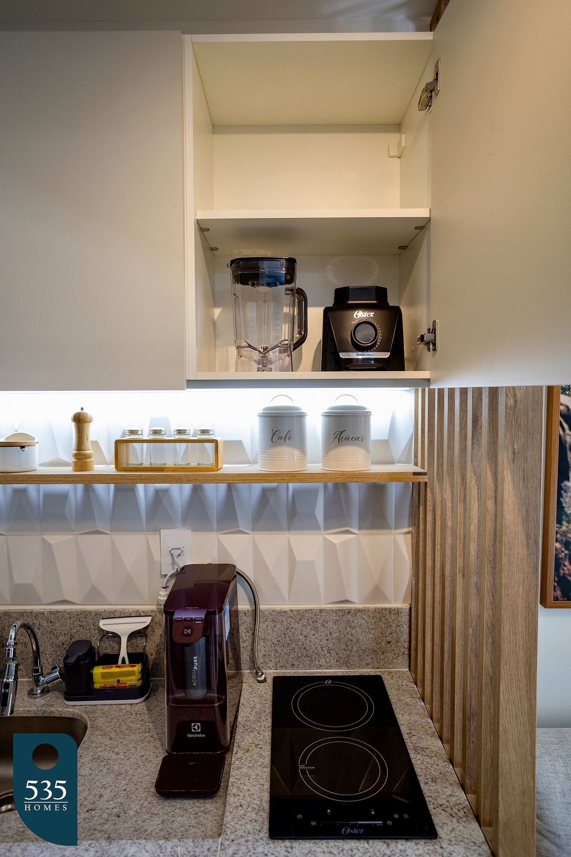 In the kitchen, you'll have access to a refrigerator, water dispenser, 2-burner induction cooktop, portable oven, microwave, and sandwich maker, as well as a blender to make your daily routines easier. The apartment also provides a clothes drying rack, hangers, coffee maker, iron and ironing board, hairdryer, and bidet, offering even more convenience during your stay. Everything is designed for you to feel at home and make the most of your visit to Ondina.