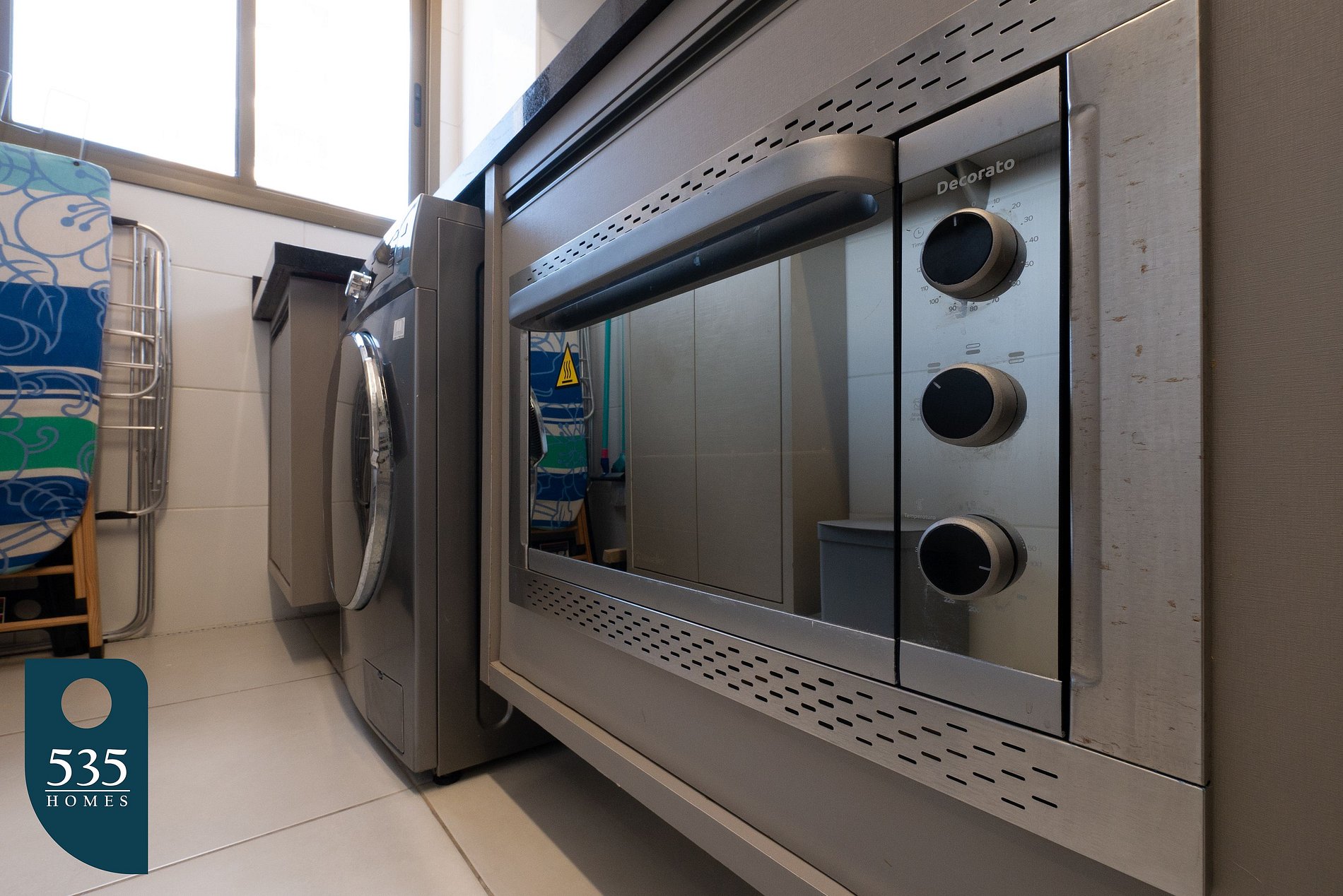 The living room features a 50" Smart TV, ensuring moments of relaxation, while the kitchen is equipped with high-quality appliances, such as a microwave, refrigerator, oven, and a 4-burner induction cooktop. Additionally, there is a blender, electric kettle, sandwich maker, and water purifier, providing all the comfort needed to prepare your meals.