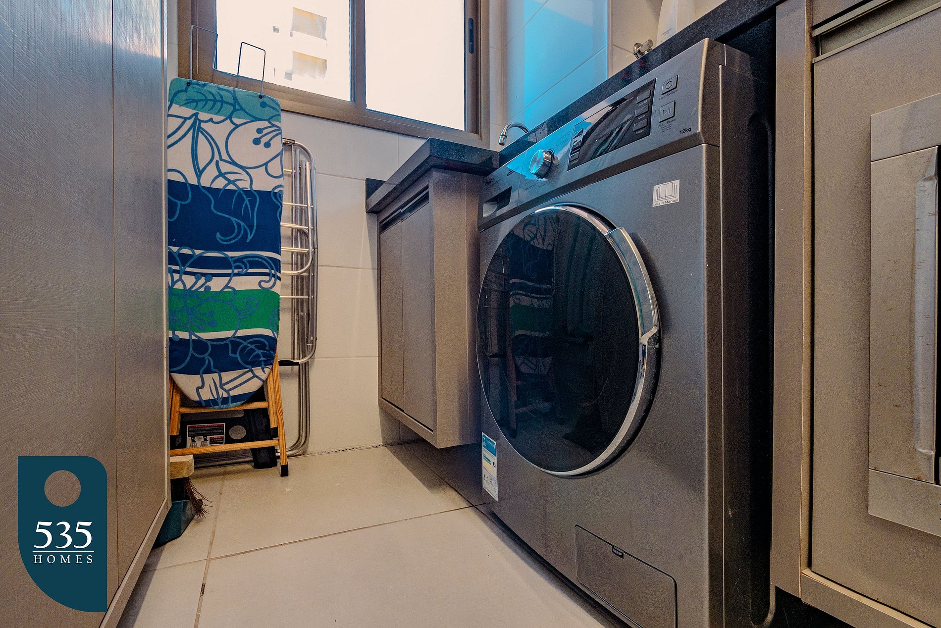 For coffee lovers, there is a capsule coffee machine available outside the kitchen, allowing for a delightful start to your day. The apartment also includes a beer cooler to keep your drinks perfectly chilled. For your convenience, a washing machine, iron, and ironing board are provided, along with a clothes drying rack, enabling you to take care of your clothes during your stay. A vacuum cleaner, bidet shower, and hairdryer complete the apartment’s amenities, ensuring comfort and practicality in your daily routine.