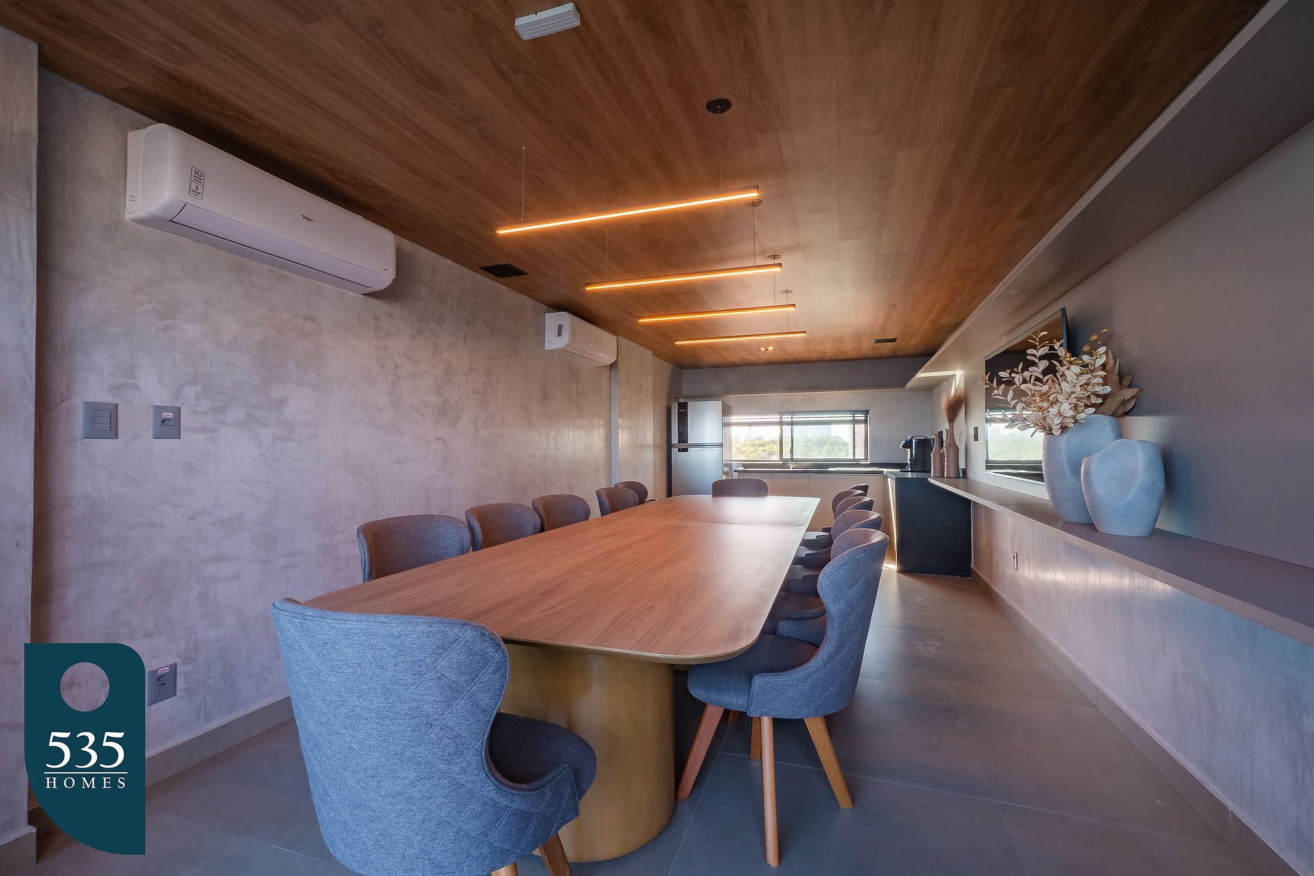 The condominium offers excellent infrastructure in its common areas, carefully designed to provide comfort and well-being to its residents. The laundry room is equipped with modern machines that make the washing and drying process easier, ensuring convenience for everyone. The fully equipped gym is available for those seeking a fitness routine, with 500m² and complete infrastructure, sports bar, gourmet workplace and barbecue place, while the rooftop, which is one of the biggest in the city provides a stunning environment where residents can relax or socialize, enjoying the tranquility and the surrounding view. For those looking for a workspace, the condominium offers a modern and functional workplace, ideal for professional activities, with workstations and high-speed internet.