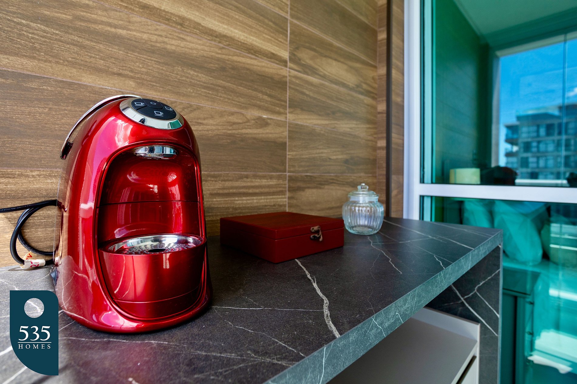 The balcony is one of the highlights of the apartment: a charming spot with a dining table and a capsule coffee machine, perfect for starting your day peacefully or enjoying a special moment outdoors.