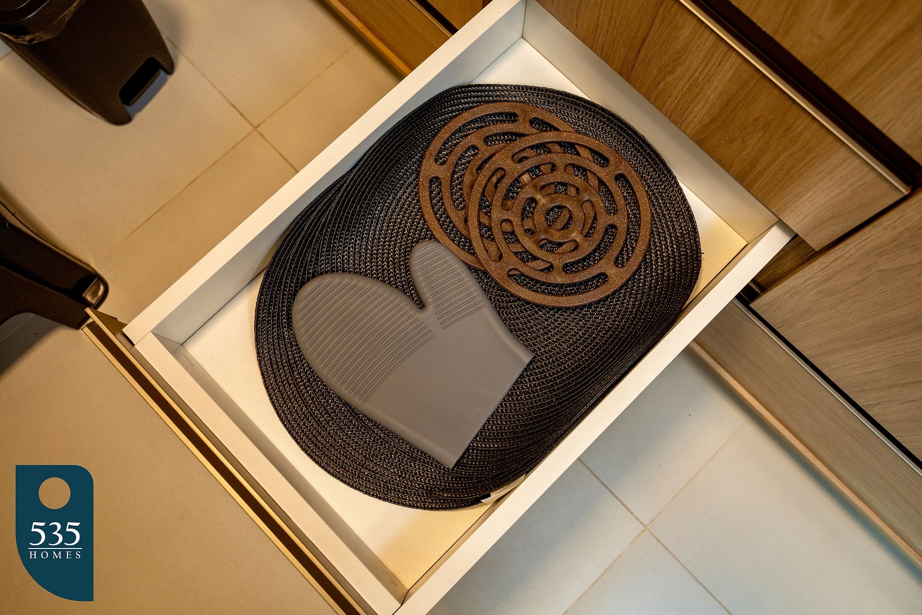 The laundry area offers convenience with a floor drying rack and an iron, making everyday routines easier—even during longer stays.