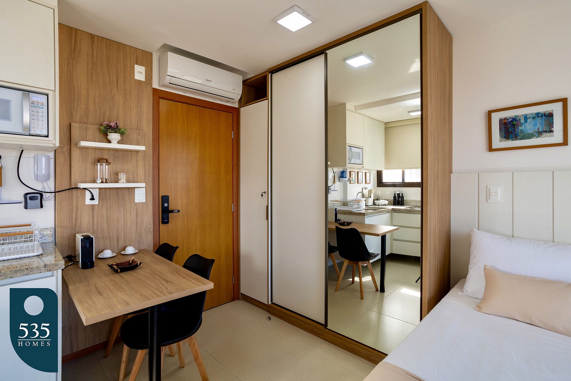 The studio is compact and ideal for those seeking a practical stay without compromising on style or location. The building is well-maintained, with 24-hour security, elevators, and amenities that ensure a more comfortable experience.