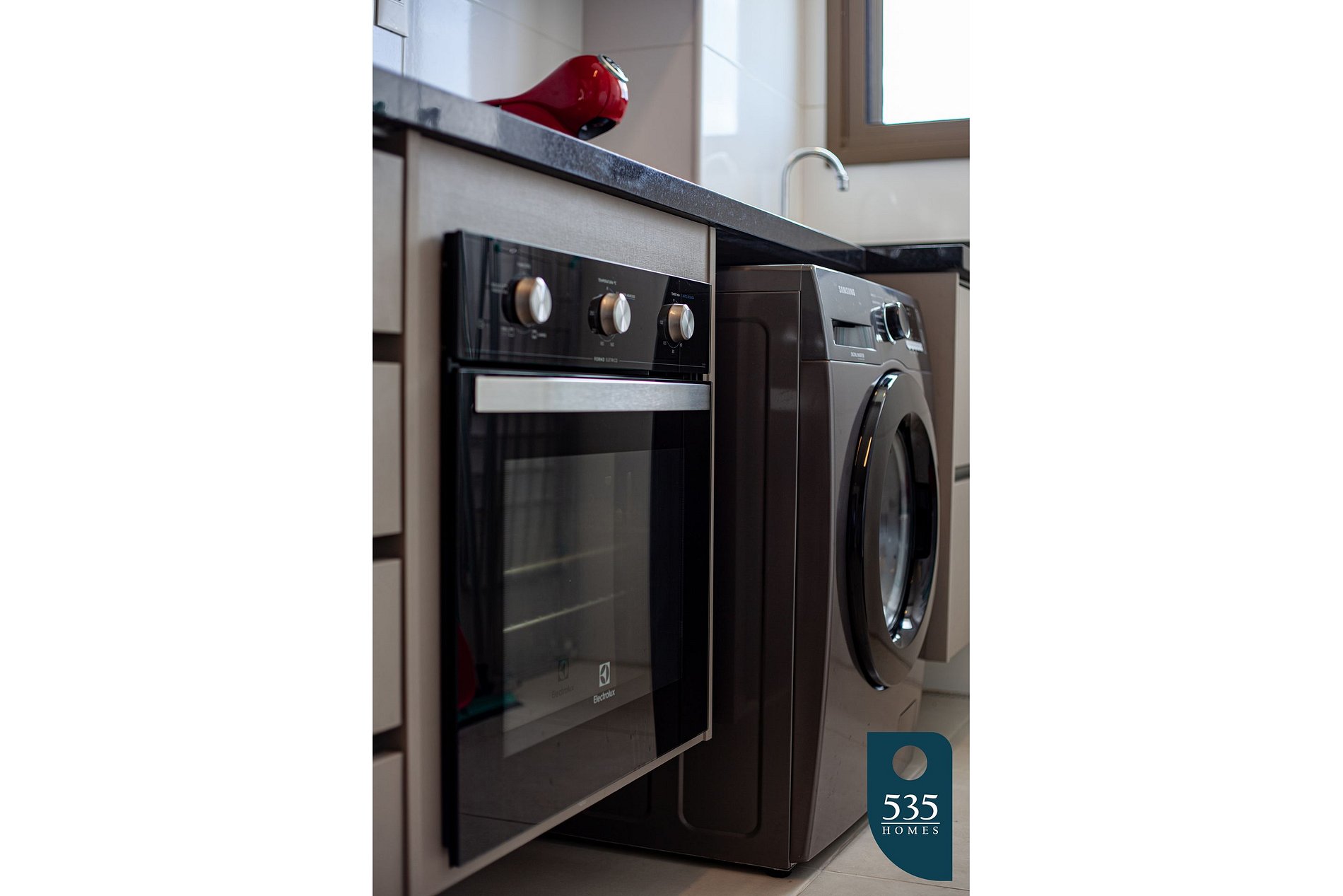 This apartment has windows in the service area and kitchen, making it much brighter and ventilated.