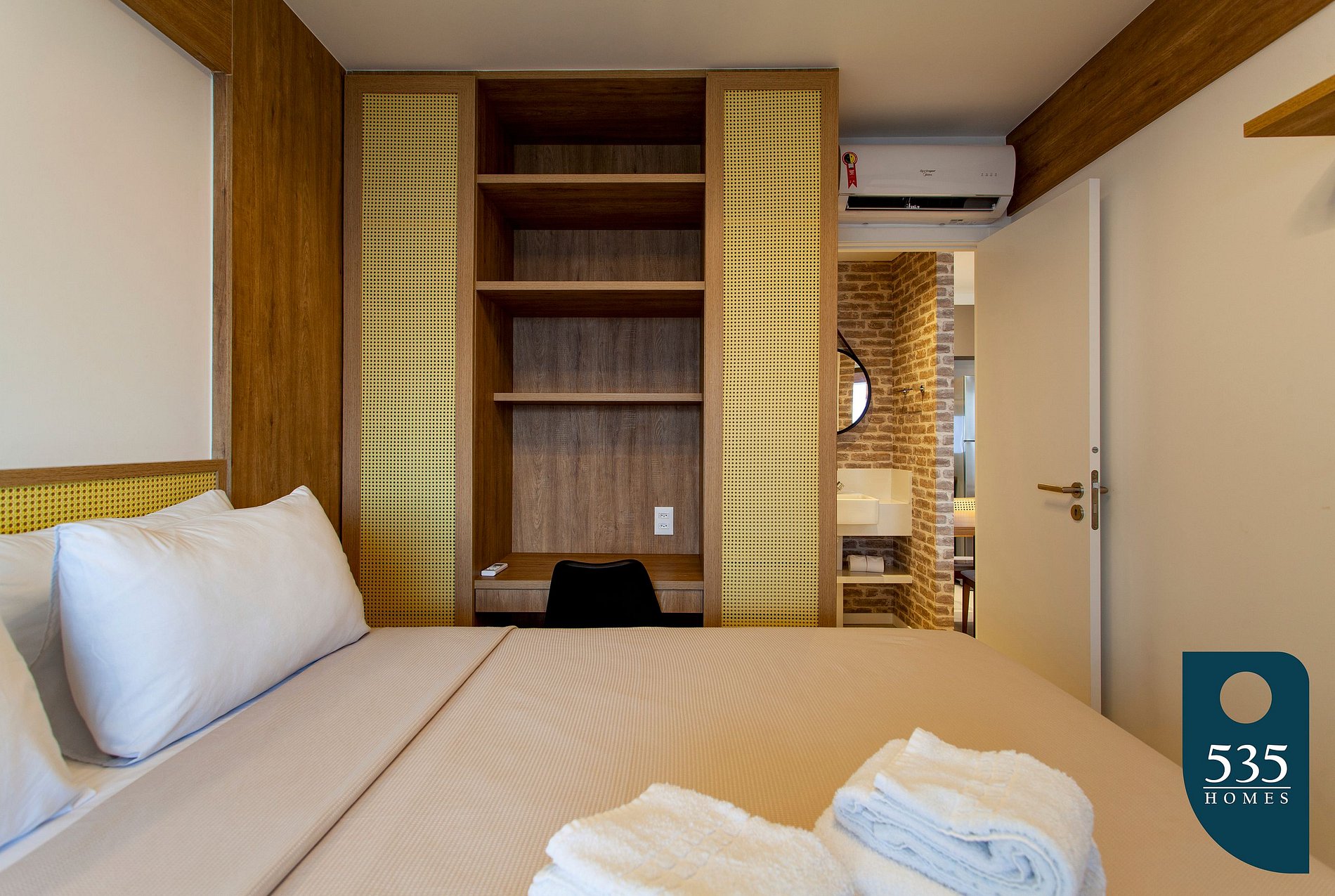 Both the bedroom and the living room have Split air conditioning.