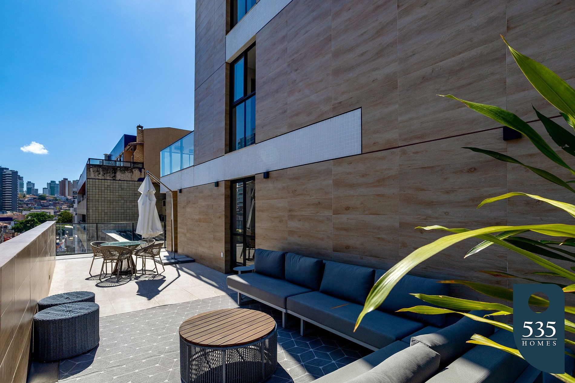 Terraço com chave disponível na recepção.