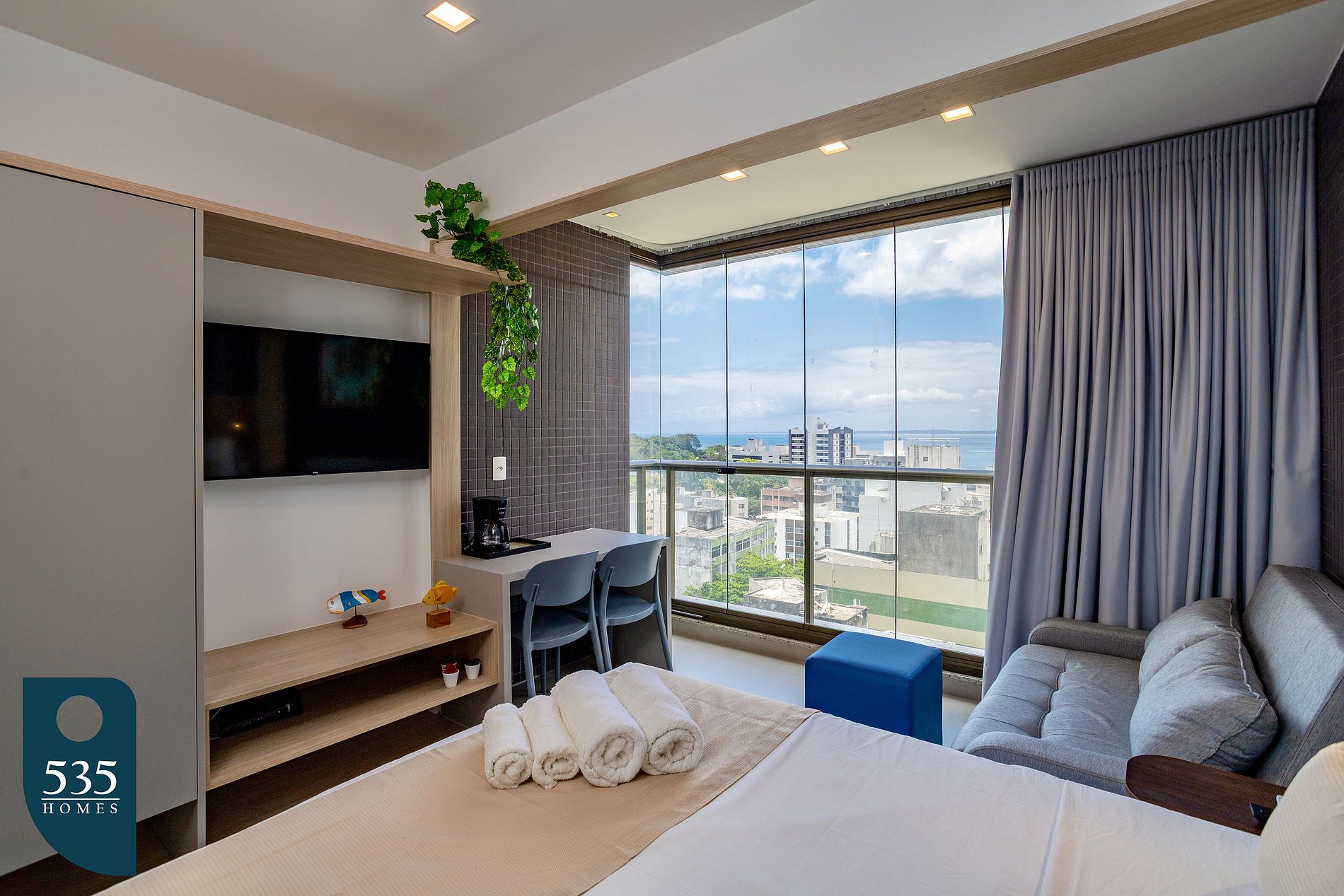 Localizado na Barra, um dos bairros mais desejados de Salvador, este apartamento por temporada com uma vista do 16º andar oferece uma estadia confortável e prática, ideal para quem busca aproveitar a cidade com comodidade. A passos da praia do Farol e do Shopping Barra, o imóvel combina localização privilegiada com fácil acesso a bares, restaurantes, comércio e às principais atrações da região. Perfeito para relaxar, explorar e viver o melhor de Salvador com conforto e mobilidade.