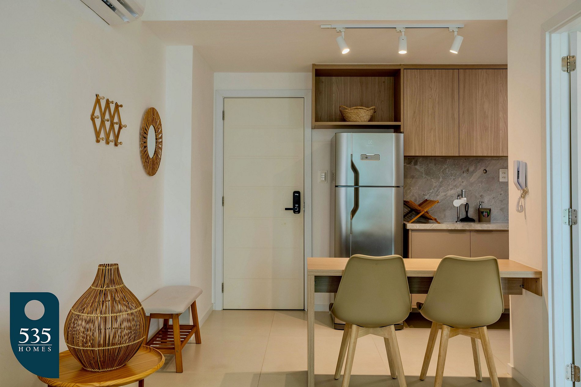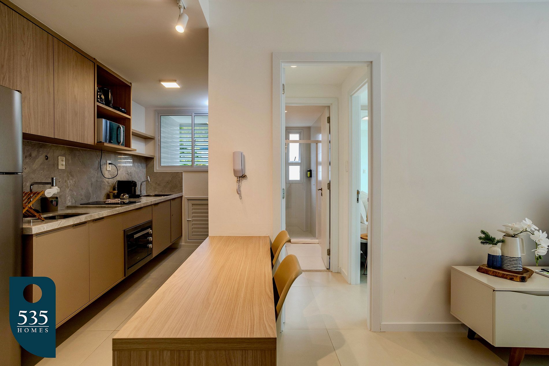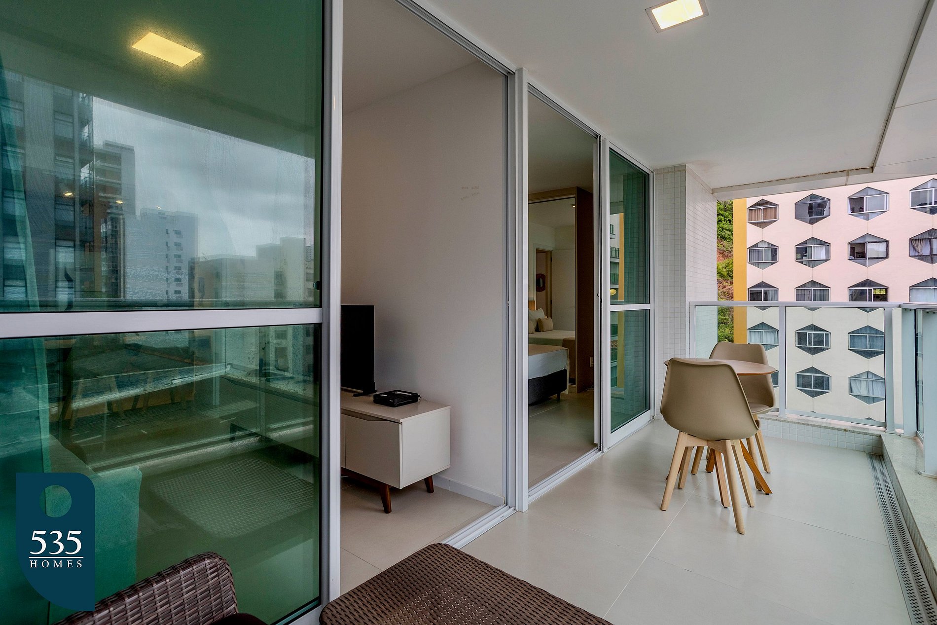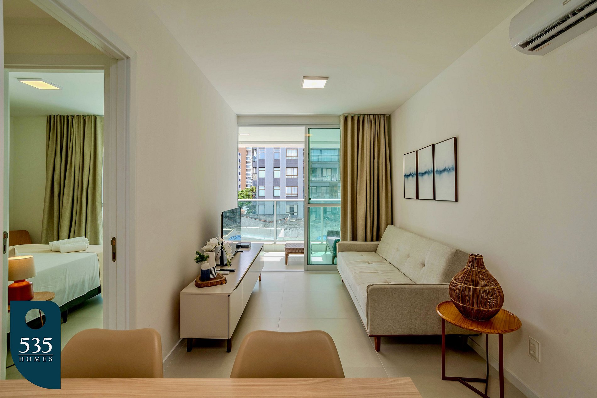 Este apartamento por temporada oferece praticidade e conforto em cada ambiente. A cozinha é equipada com torneira com água filtrada, geladeira, micro-ondas, cooktop de indução com duas bocas, liquidificador, sanduicheira, máquina de café, cafeteira italiana, forno e jogo de panelas, garantindo total funcionalidade no preparo das refeições. Na sala, há ar-condicionado, cortina blackout e Smart TV de 43 polegadas, proporcionando conforto e entretenimento. A varanda integrada ao quarto e à sala possui móveis externos, oferecendo um espaço extra para relaxar.O quarto dispõe de ar-condicionado, cortina blackout, luminária de mesa, poltrona, ferro elétrico com mesa de passar roupa e espelho de corpo, criando um ambiente funcional e aconchegante. O banheiro inclui chuveiro elétrico e secador de cabelo, completando a estrutura essencial para uma estadia confortável.