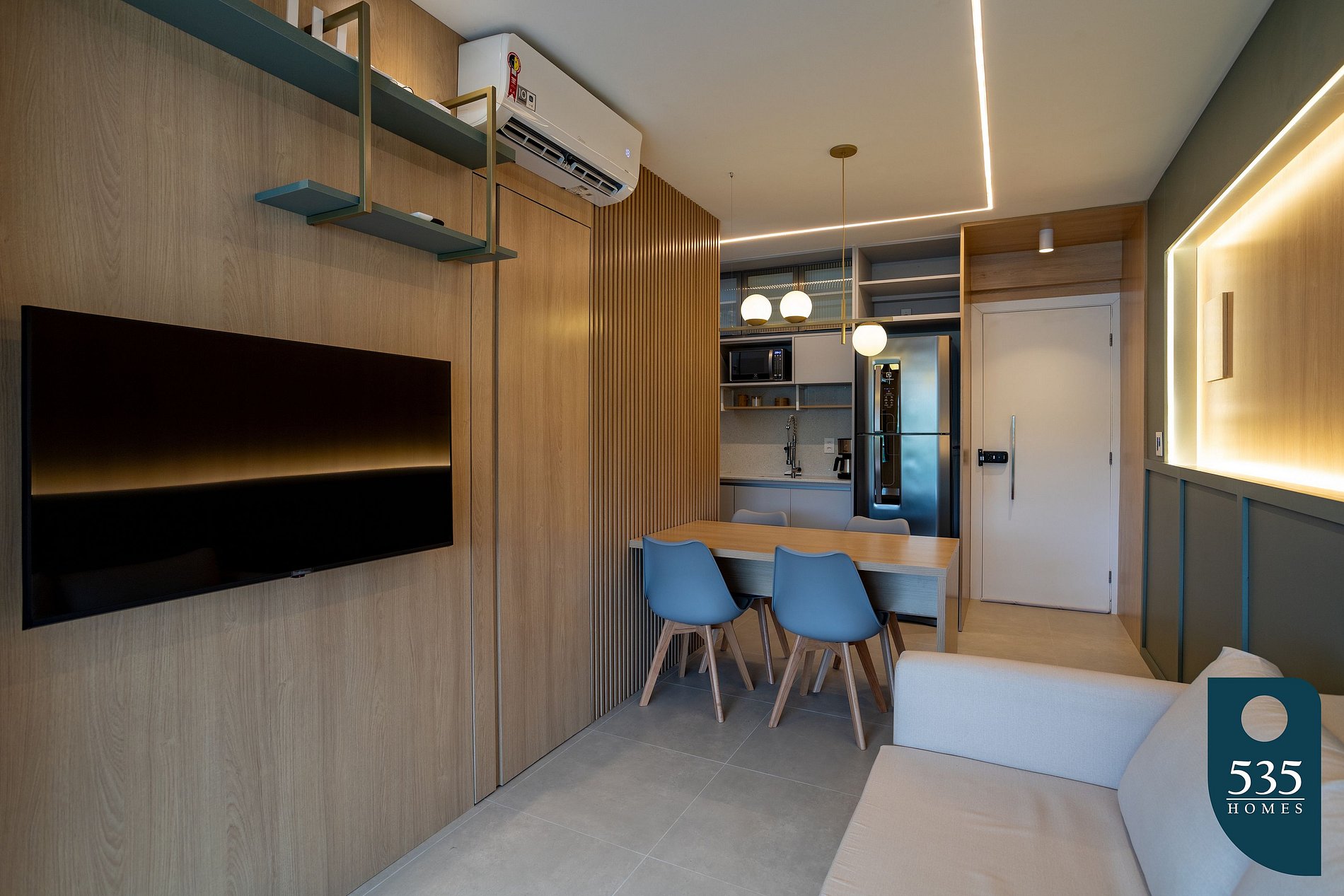 Este charmoso apartamento oferece todo o conforto e praticidade que você precisa para uma estadia agradável. Equipado com uma confortável cama de casal, geladeira, cooktop e micro-ondas, você terá tudo à mão para preparar suas refeições. Desfrute do clima agradável com ar condicionado tanto no quarto quanto na sala, enquanto relaxa na sala de estar, equipada com uma smart TV de 44'' e um sofá cama de casal. O quarto também oferece uma smart TV de 32'' para o seu entretenimento.