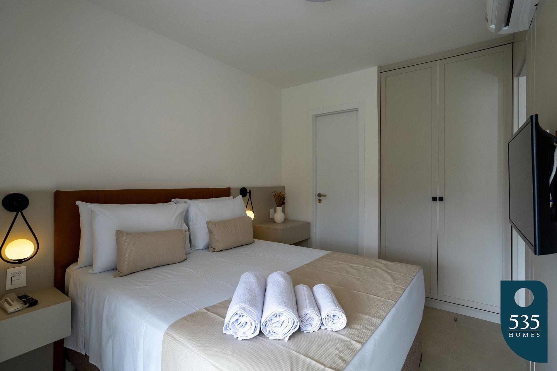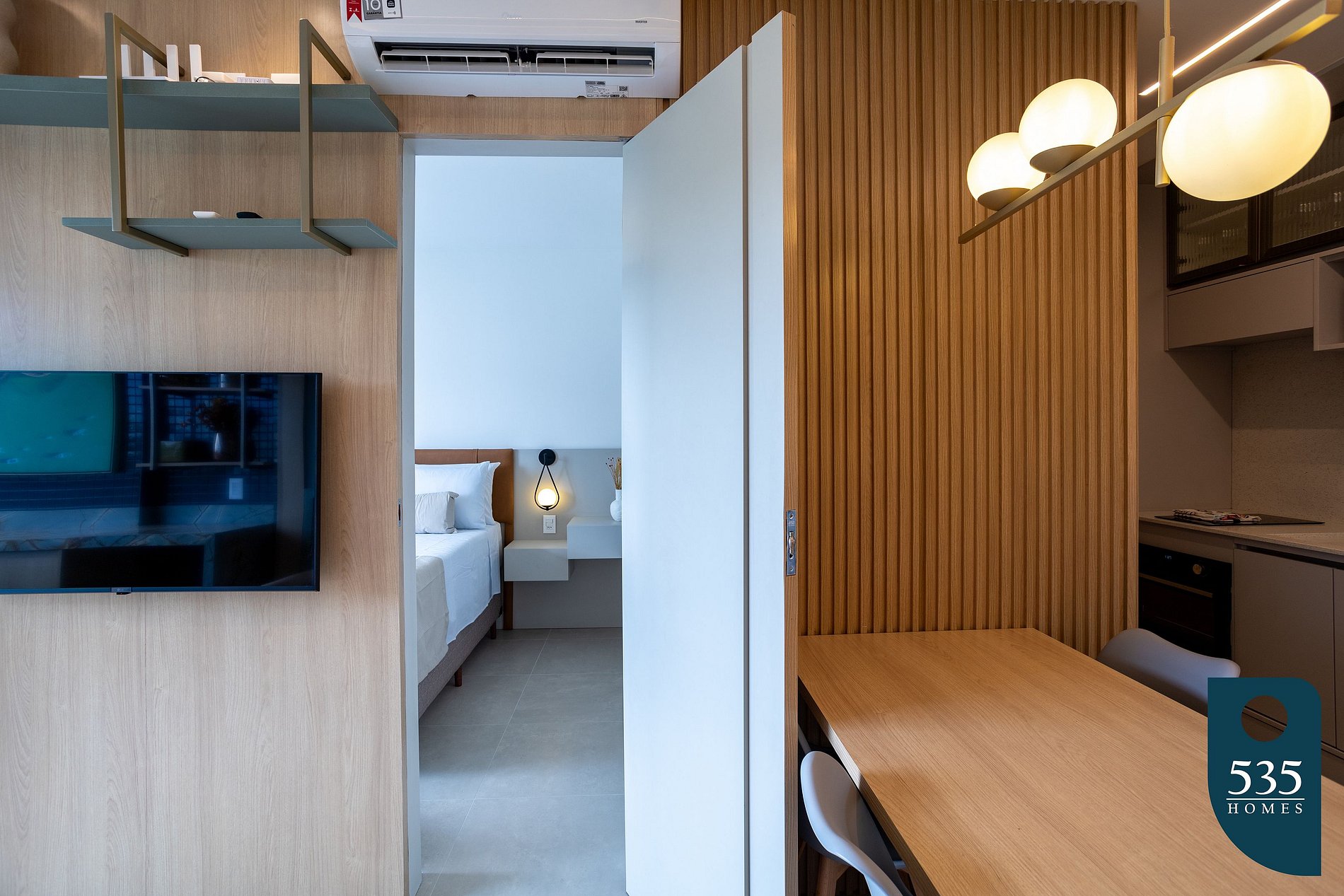 Este charmoso apartamento oferece todo o conforto e praticidade que você precisa para uma estadia agradável. Equipado com uma confortável cama de casal, geladeira, cooktop e micro-ondas, você terá tudo à mão para preparar suas refeições. Desfrute do clima agradável com ar condicionado tanto no quarto quanto na sala, enquanto relaxa na sala de estar, equipada com uma smart TV de 44'' e um sofá cama de casal. O quarto também oferece uma smart TV de 32'' para o seu entretenimento.