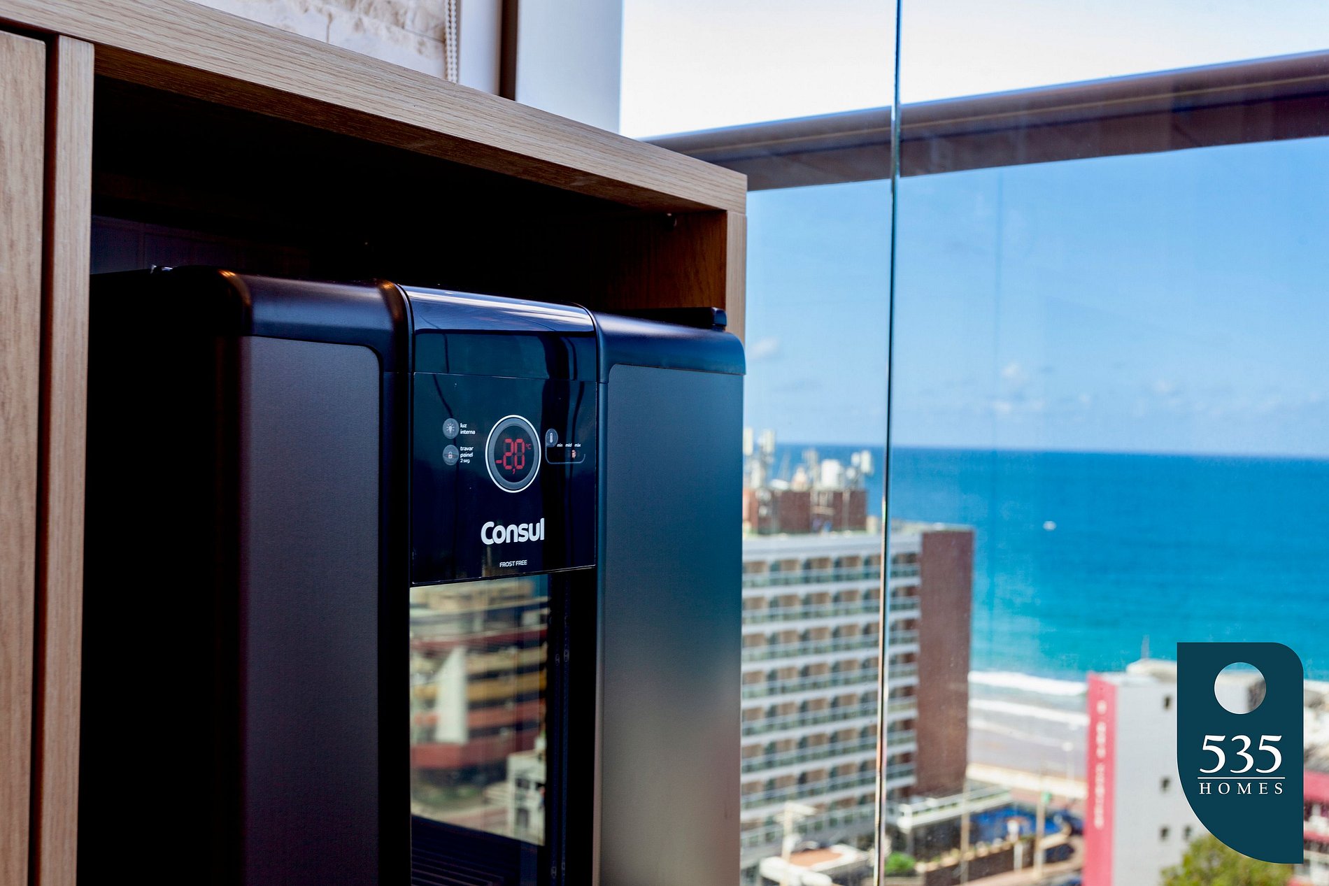 Todos o móveis novos e uma vista linda para a praia da Barra.