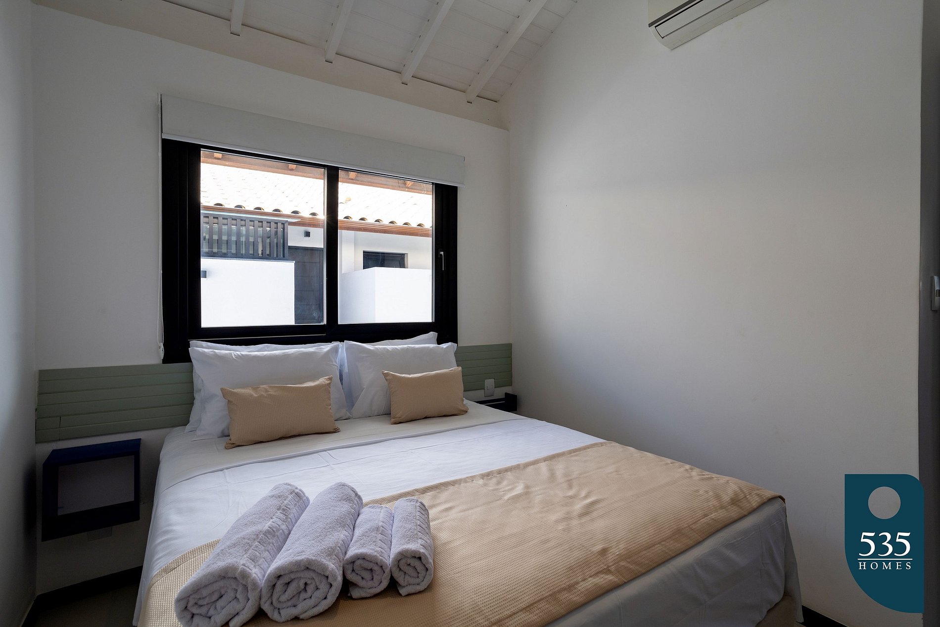 Este encantador apartamento ofrece una experiencia cómoda y práctica, con una cama queen y un sofá cama doble que acomoda a dos personas, perfecto para sus vacaciones o estadías prolongadas. Equipado con internet de 100 mb, el espacio garantiza una conectividad eficiente para todas sus necesidades digitales. El dormitorio es acogedor y cuenta con aire acondicionado, proporcionando un ambiente agradable para una buena noche de sueño.