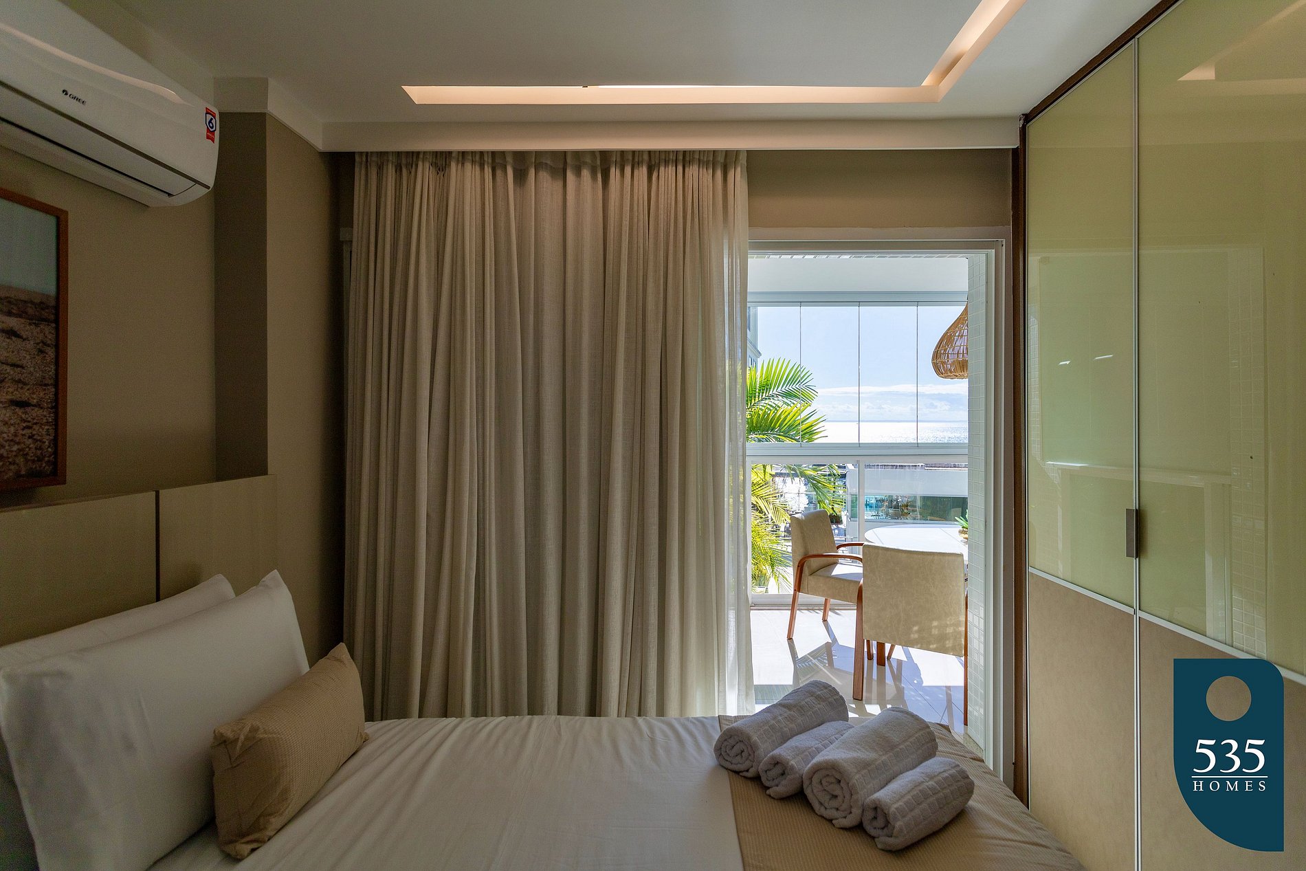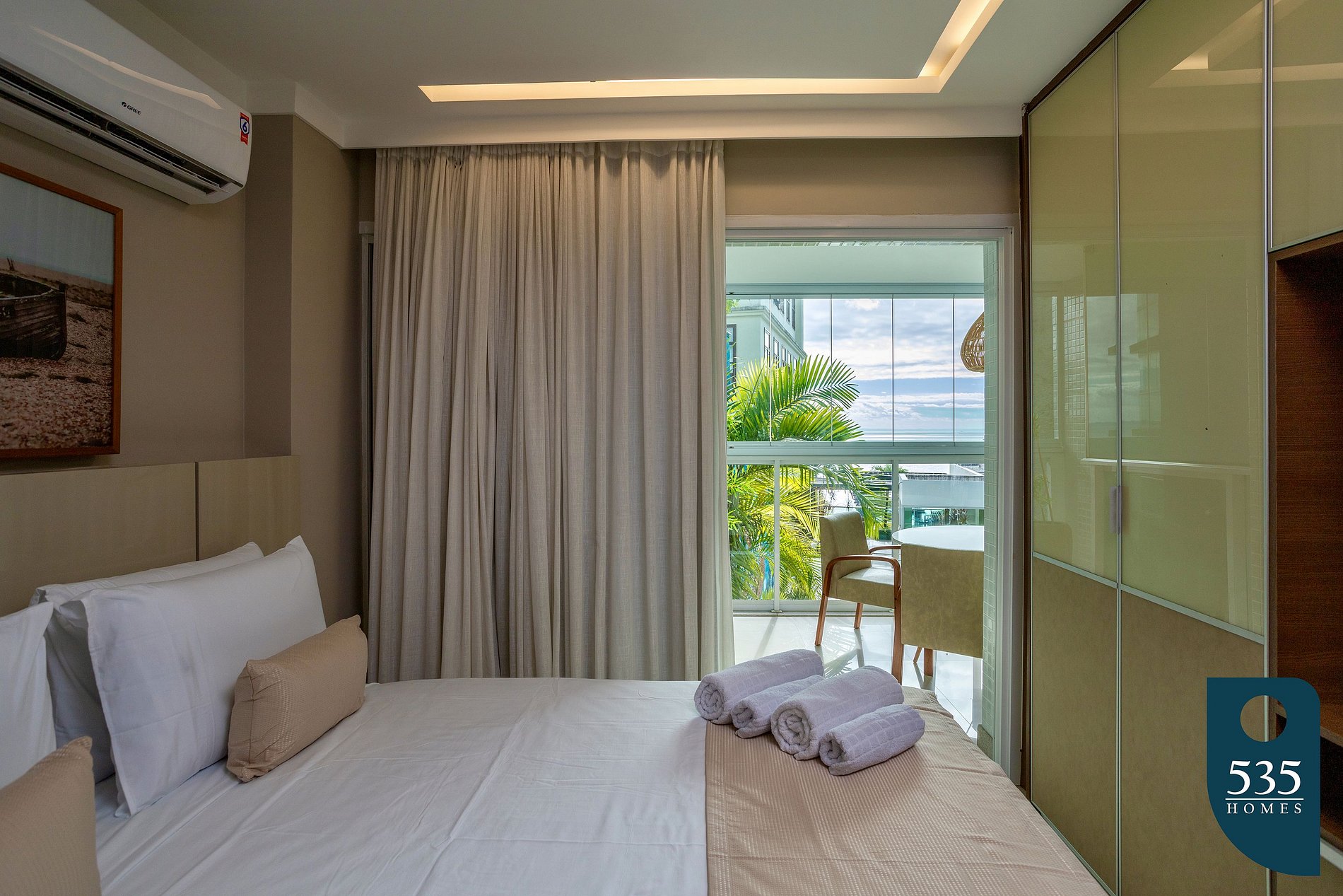 El apartamento contiene una cama queen y un sofá cama doble que acomoda a dos personas. Al entrar, encontrará una sala de estar con aire acondicionado y una Smart TV de 55" para su entretenimiento. En el dormitorio, además del aire acondicionado, encontrará una televisión de 32" para sus momentos de ocio.
