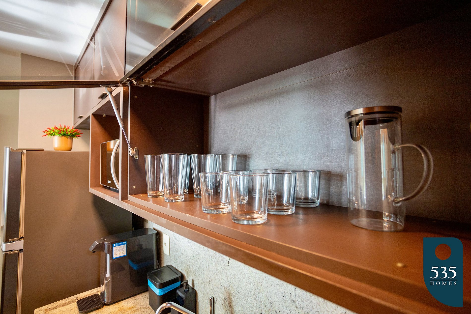 La cocina está completamente equipada para todas sus necesidades culinarias. Incluye refrigerador, microondas, fogón, licuadora, sandwichera, cafeteras de cápsulas y eléctrica, así como hervidor eléctrico. Todo lo necesario para que se sienta como en casa y pueda preparar sus comidas con facilidad.