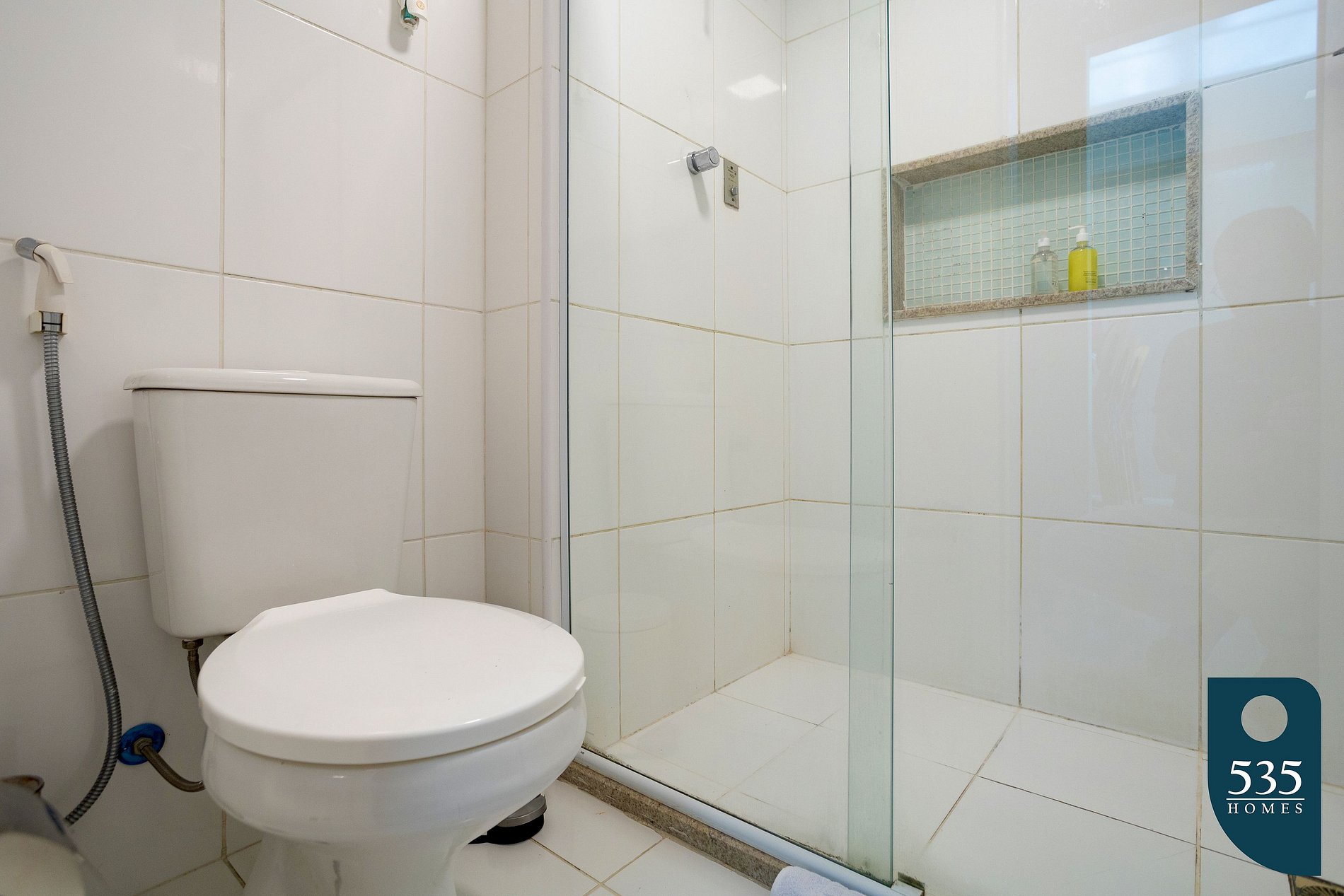 El apartamento contiene una cama queen y un sofá cama doble que acomoda a dos personas. Al entrar, encontrará una sala de estar con aire acondicionado y una Smart TV de 55" para su entretenimiento. En el dormitorio, además del aire acondicionado, encontrará una televisión de 32" para sus momentos de ocio.