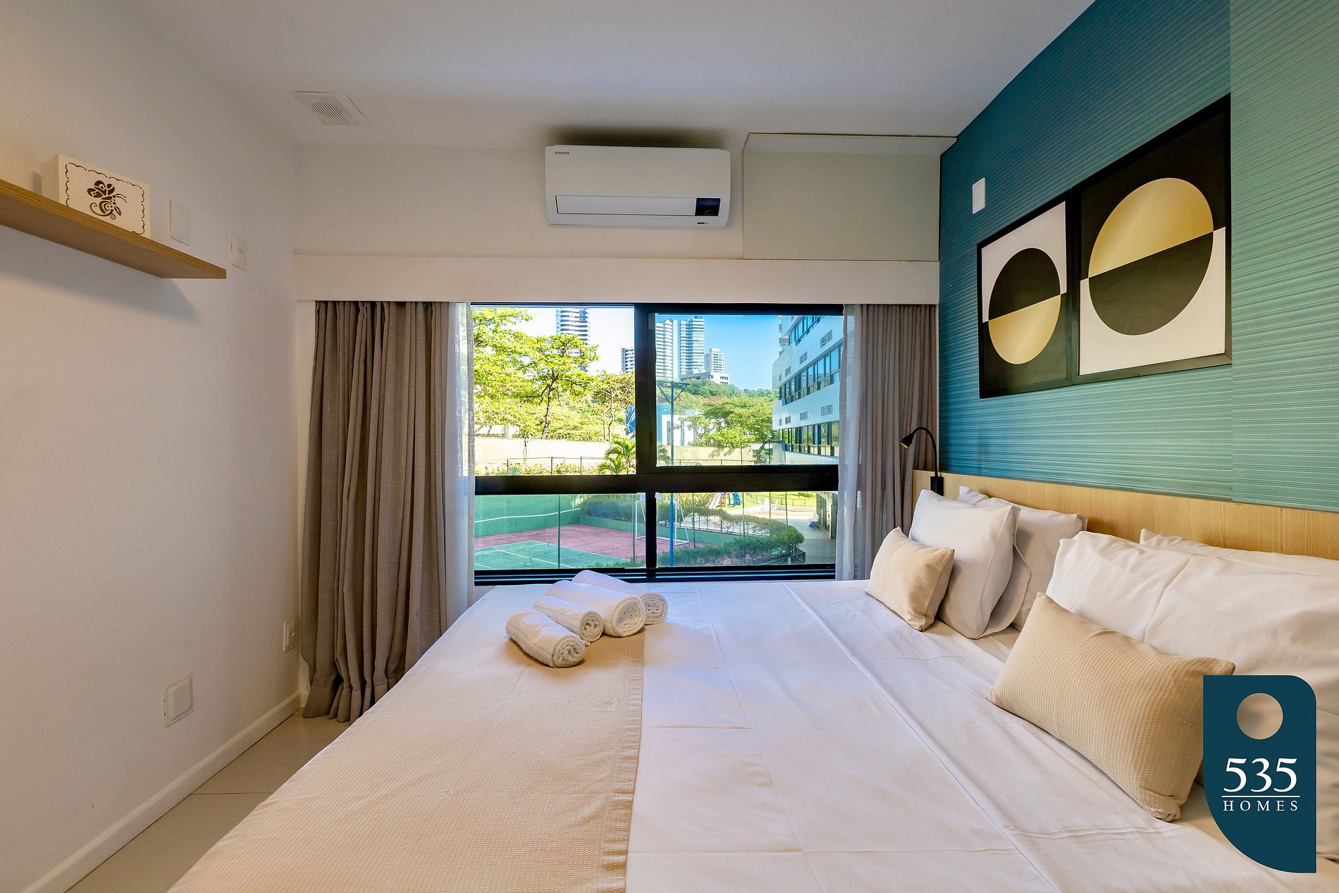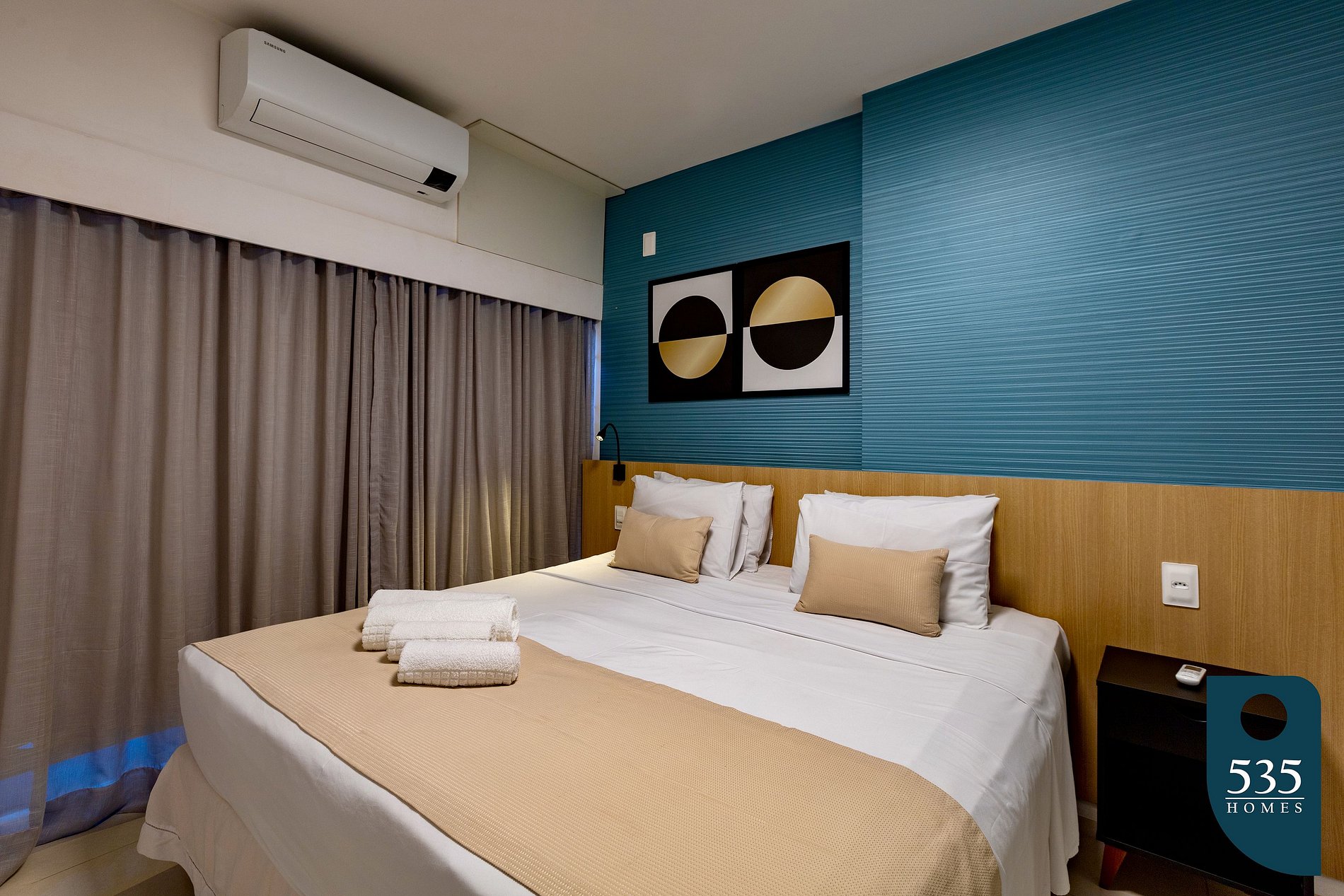 El espacio está muy bien equipado con televisión, aire acondicionado en la habitación y la sala de estar, internet Wi-Fi de 150 Mbps, refrigerador, licuadora, microondas, cafetera Dulce Gusto, parrilla para sándwiches, filtro de agua y secador de pelo.