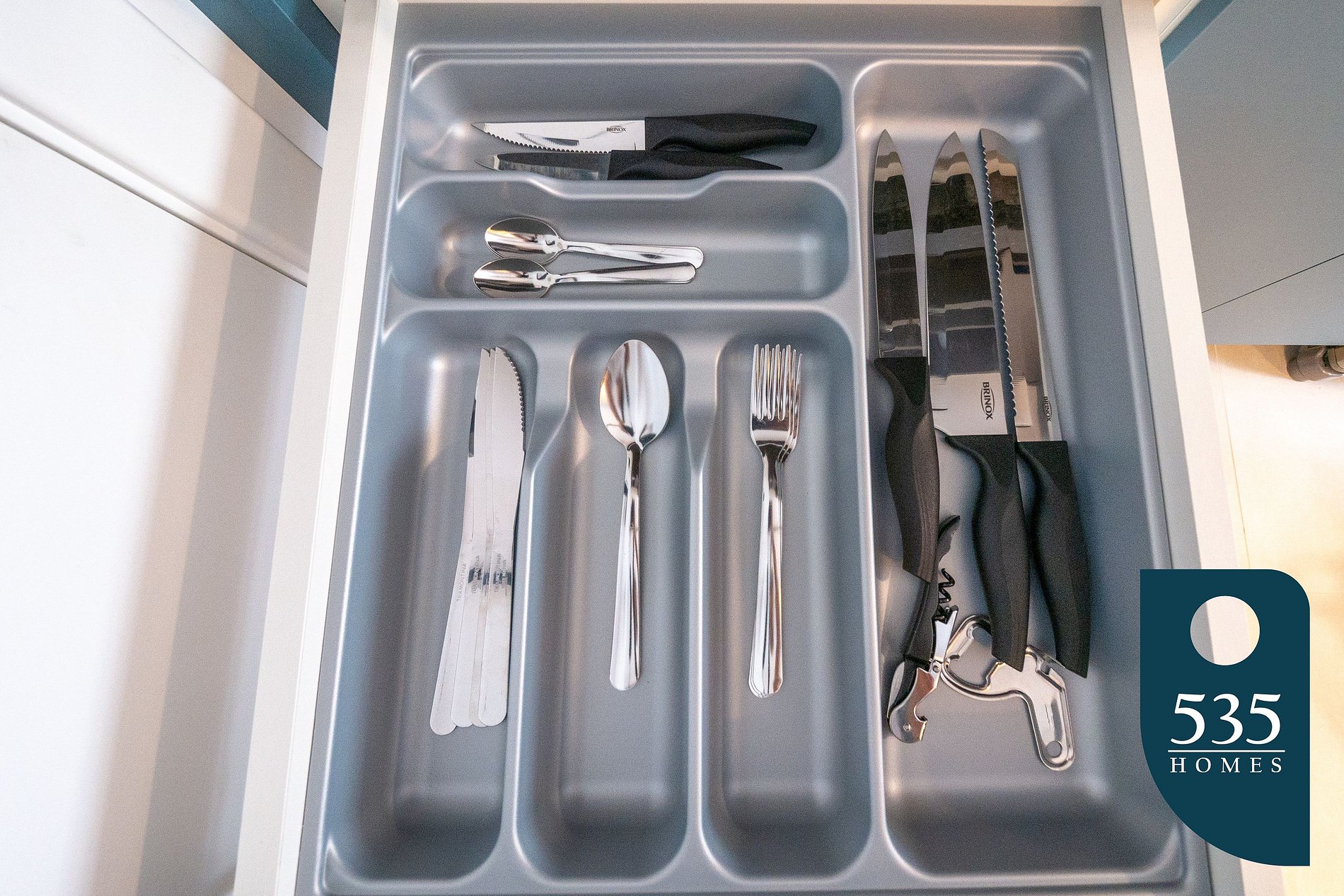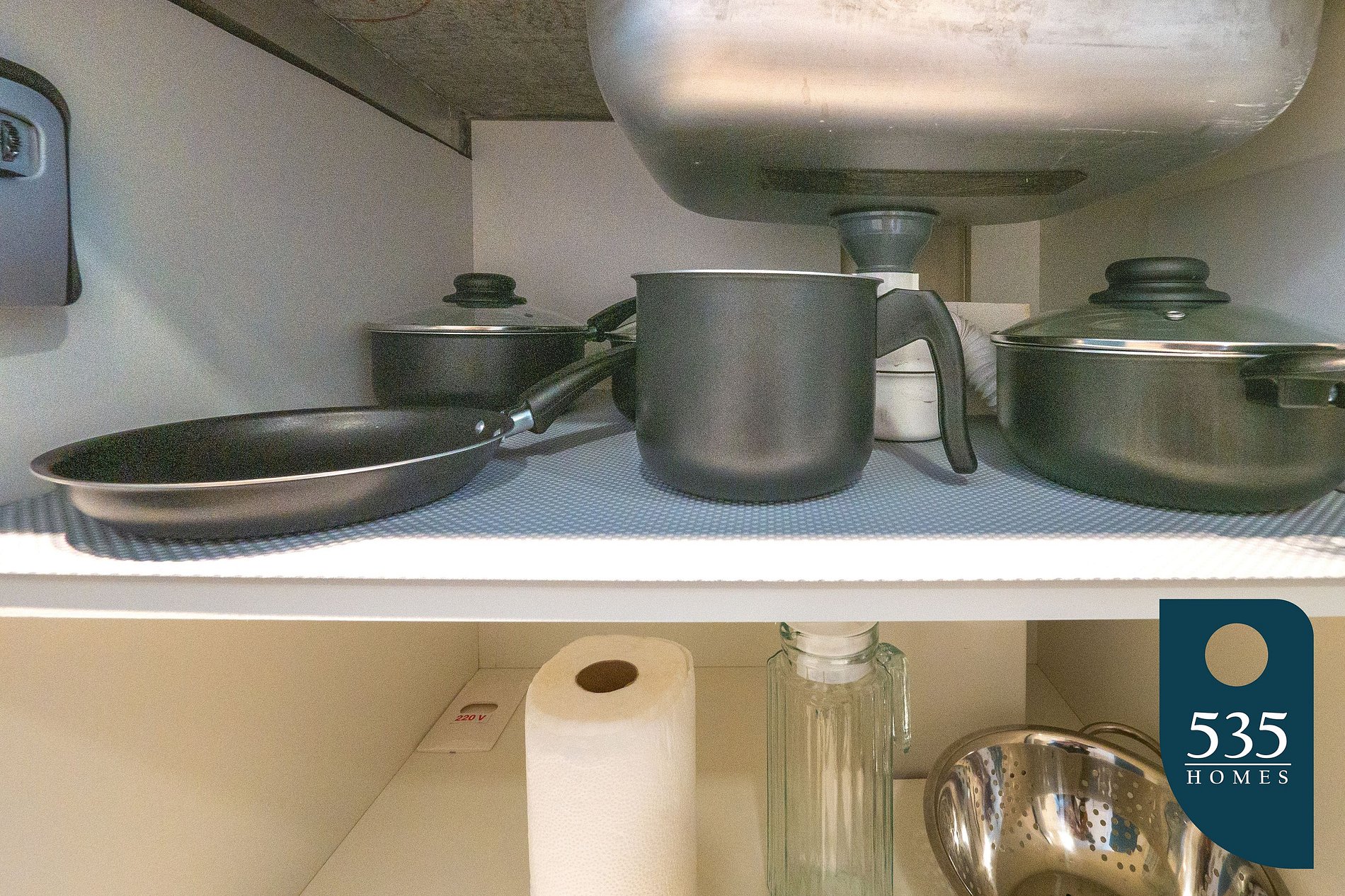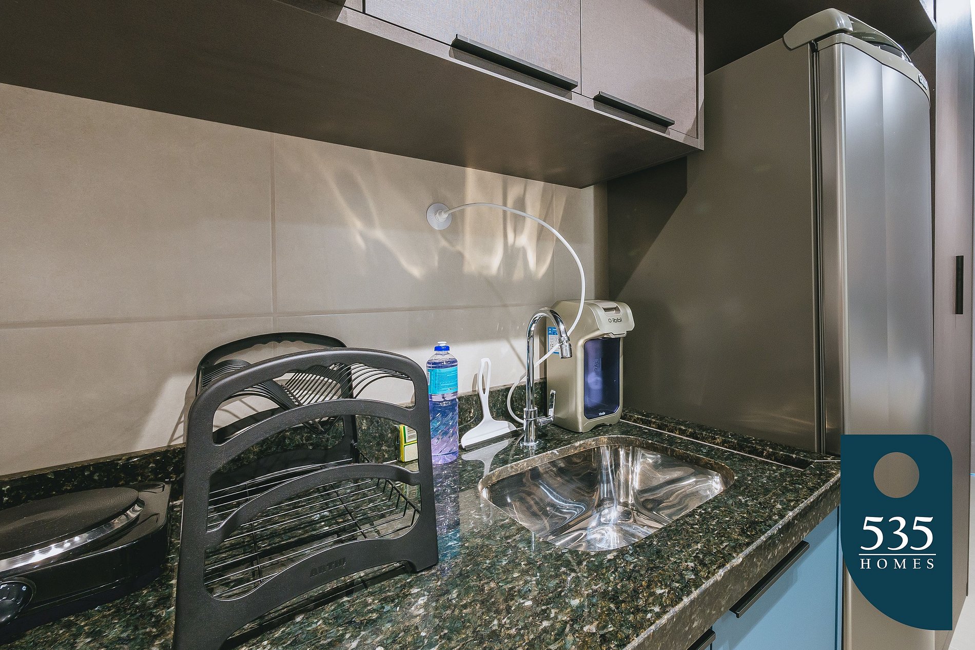 La cocina está equipada con electrodomésticos modernos, como refrigerador, cocina eléctrica, microondas, sandwichera y licuadora, lo que garantiza practicidad para la preparación de sus comidas.