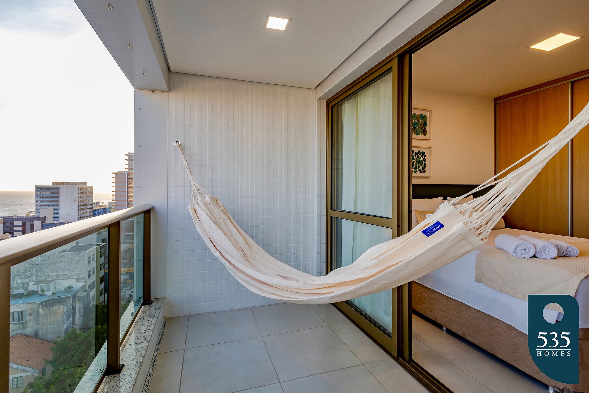 Relaxe na varanda com uma rede de descanso e aprecie a vista deslumbrante para o mar. Além disso, oferecemos internet veloz de 500Mbps para manter você conectado durante toda a sua estadia.