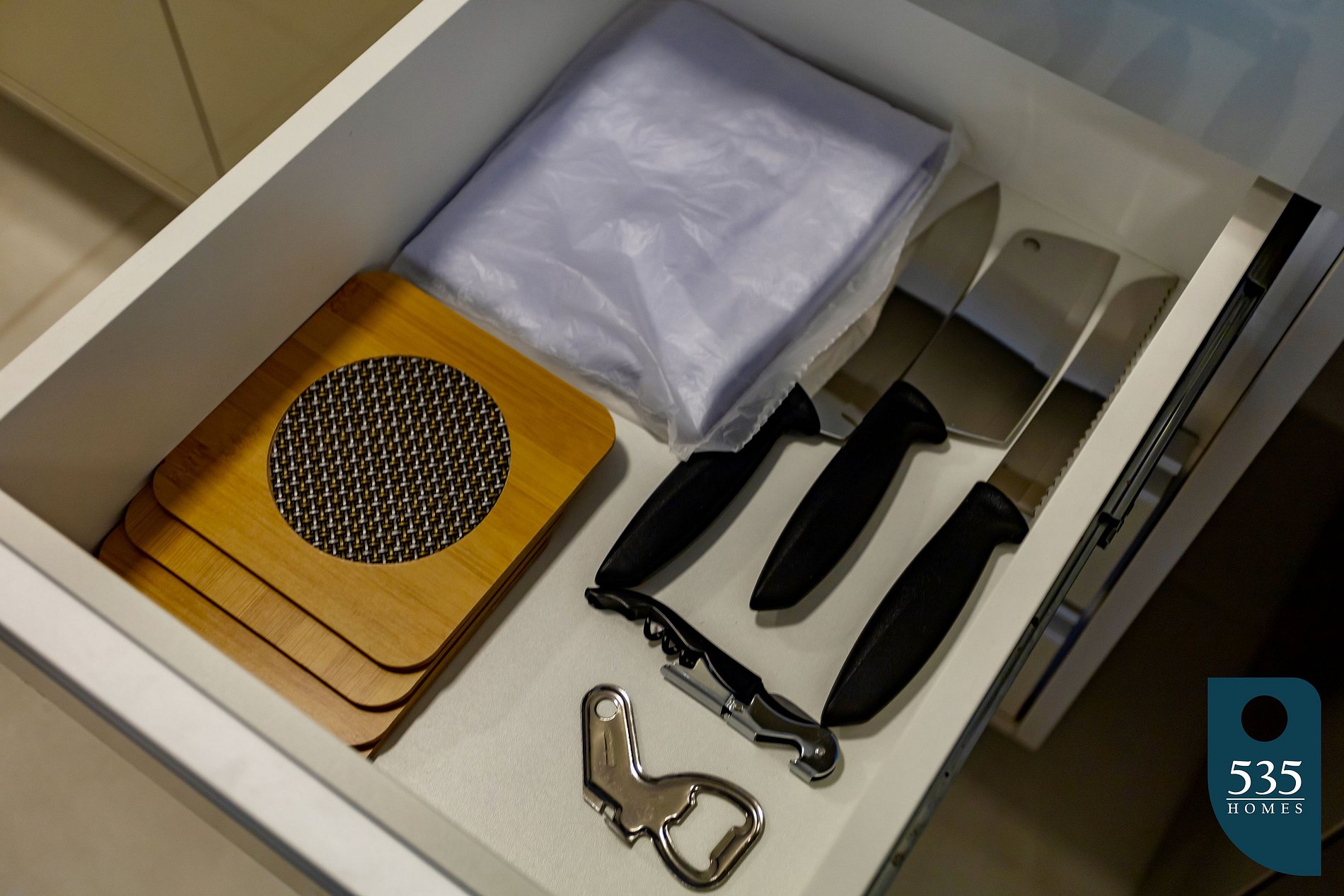 O apartamento tem tudo o necessário: copos, taças, pratos, xícaras, panelas, frigideira, talheres, descanso de mesa, cafeteira, potinhos para sorvete, pano de prato, luva de forno, enfim, tudo de miudezas. Sobre os fogão e eletrodomésticos é exatamente como nas fotos e tudo funcionando corretamente e limpos.