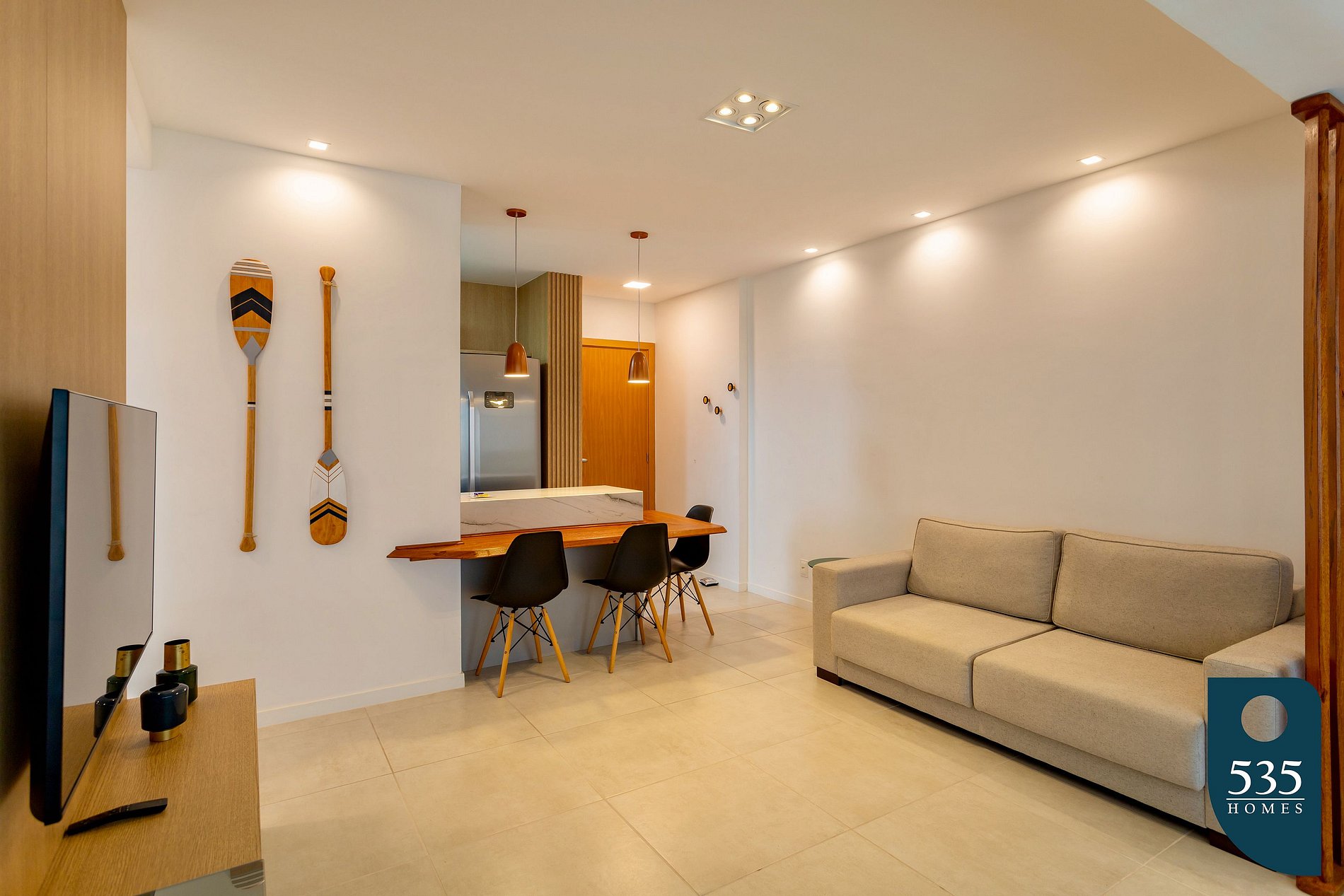 Além disso, nossa cozinha completa permite que você faça suas próprias refeições com facilidade. A sala de estar espaçosa e a varanda gourmet integrada são perfeitas para relaxar e desfrutar da vista impressionante. A sala dispões também de um sofá cama e o ar-condicionado recentemente instalado. E para completar, o condomínio conta com piscina, academia e salão de festas, proporcionando ainda mais opções de lazer para os nossos hóspedes.