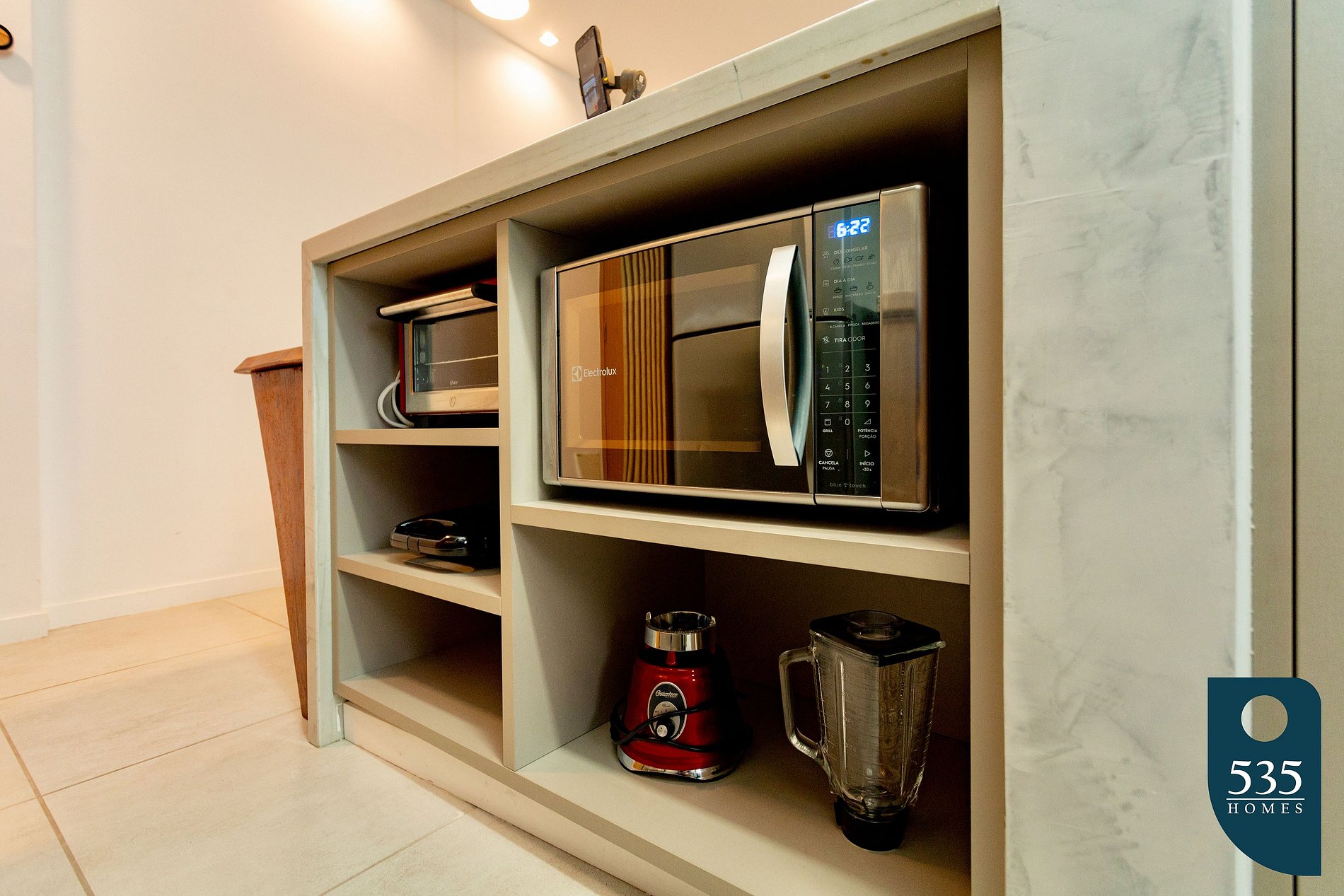 O espaço está muito bem equipado com TV LED Smart na sala e na suíte, Ar condicionado Split nos quartos e na sala, Internet Wi-FI 300Mbps , Geladeira, Liquidificador, microondas, cafeteira de filtro elétrica, sanduicheira grill, filtro de água, secador de cabelo, Ferro e mesa de passar roupas e uma máquina de lavar e centrifugar roupas.