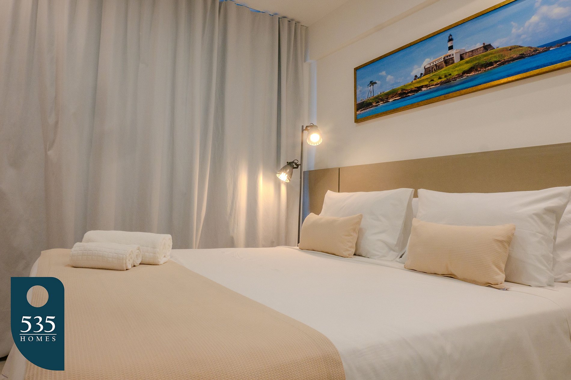 A sala de estar conta com uma Smart TV de 50", garantindo momentos de relaxamento, enquanto a cozinha dispõe de eletrodomésticos de qualidade, como micro-ondas, geladeira, forno e cooktop de indução de 04 bocas, além de um liquidificador, chaleira elétrica, sanduicheira e purificador de água, proporcionando todo o conforto necessário para preparar suas refeições. Para os apreciadores de café, há uma máquina de café em cápsulas disponível fora da cozinha, permitindo um delicioso começo de dia. O apartamento também oferece uma cervejeira, para manter suas bebidas sempre geladas. Para sua conveniência, há uma máquina de lavar, ferro de passar e tábua de passar roupa, além de um varal de roupa, permitindo que você cuide de suas roupas durante a estadia. Um aspirador de pó, ducha higiênica e secador de cabelo completam a estrutura do imóvel, garantindo que você tenha todo o conforto e praticidade no seu dia a dia.