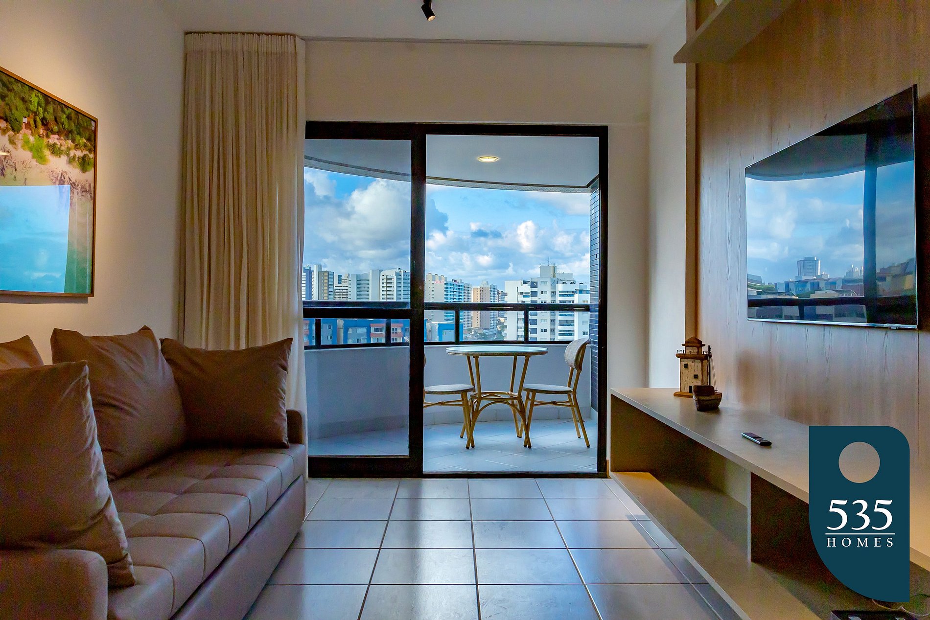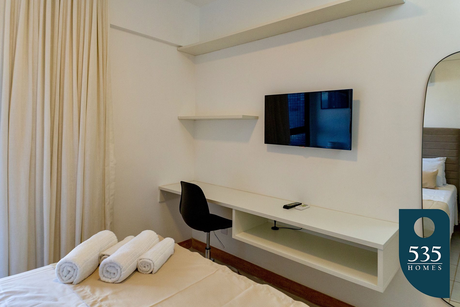 Muito bem localizado para minha ocasiao e de frente para o mar. Sem nenhum problema para entrar e nem sair. Quarto com tv e na sala tambem, alem de uma varanda si patica que tinha uma rede para aproveitar final de tarde.